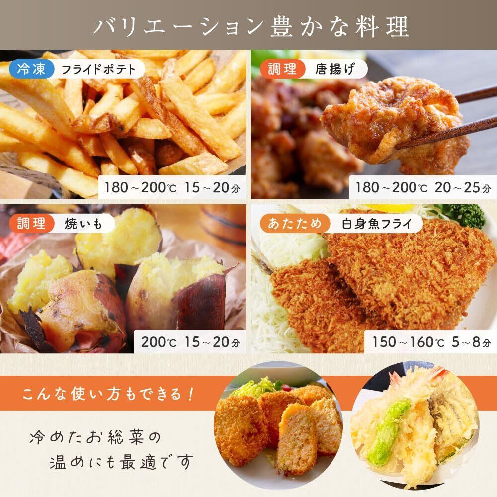 お手入れ簡単 揚げ物をするときの面倒な油の処理も不要で片付け楽々! ・トレイ・バスケット丸洗いOK 細かい部品もなく、トレイやバスケットは丸洗いが可能です。 ・本体(外側・庫内)拭くだけでOK 庫内が広いため奥までしっかり手が届きお掃除できます。
