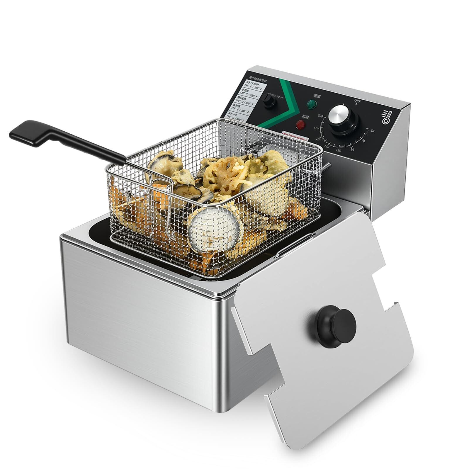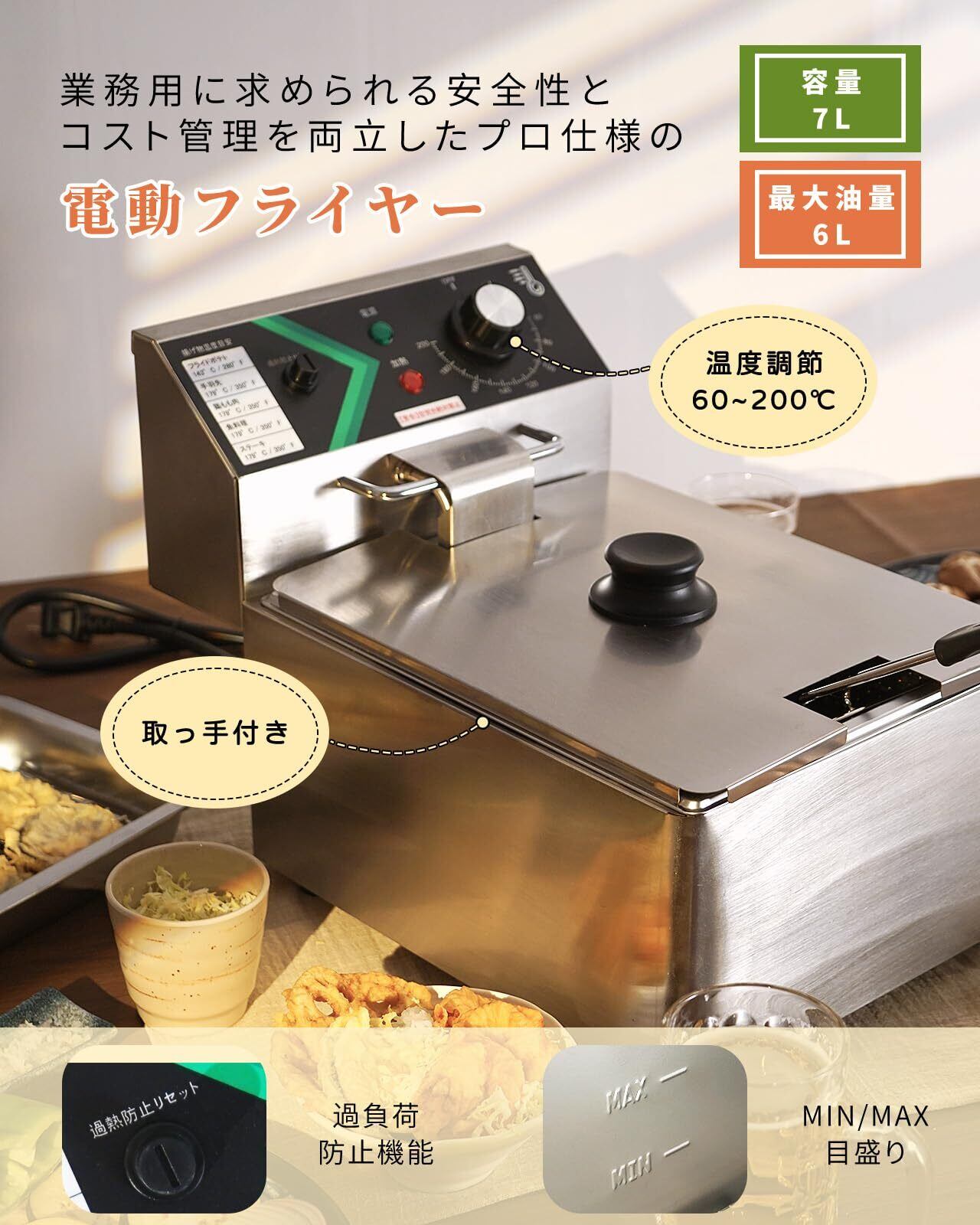 電気フライヤー 業務用 油揚げ機 6L大容量 温度調節60-200℃ 過熱保護機能搭載 304ステンレス内釜 MIN/MAX目盛り付き 油はね防止蓋 分解洗浄可能 揚げ物 天ぷら 唐揚げ