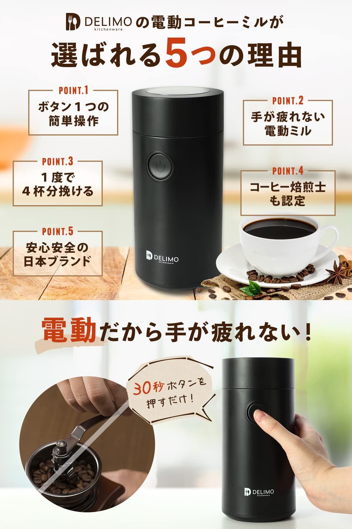 【在庫セール】電動コーヒーミル コーヒーグラインダー Delimo プロペラ式 コンセント型 パワフル 【メーカー1年付】