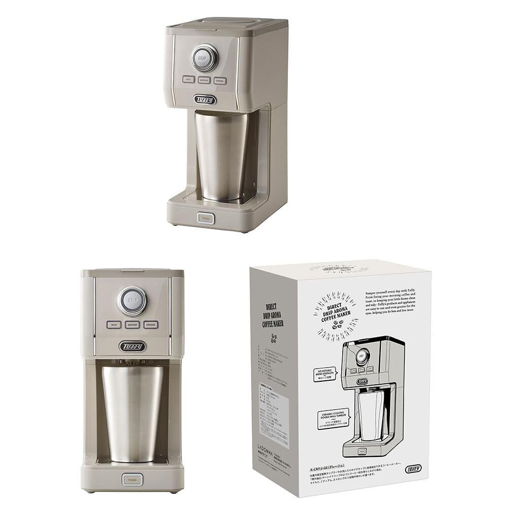 【特価商品】【Toffy/トフィー】 ダイレクトドリップアロマコーヒーメーカー K-CM12 カップに直接ドリップ ふたありタンブラー付き 間欠抽出 蒸らし機能 真空断熱 保温 保冷 高さ調節 K-CM12-GE (グレージュ)