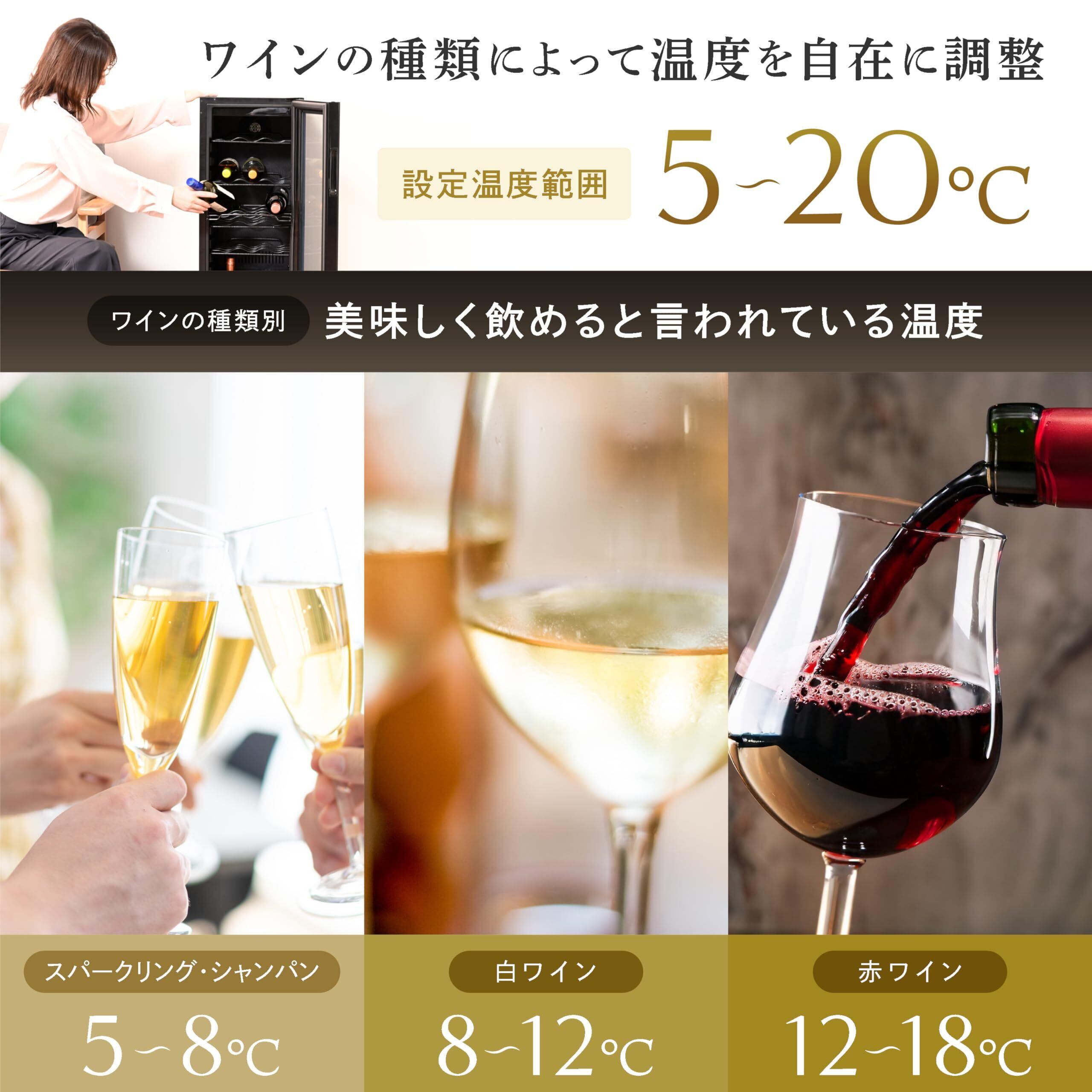 ●赤・白ワインはもちろん、シャンパンなど保存や飲み頃温度の異なるお酒に対応。