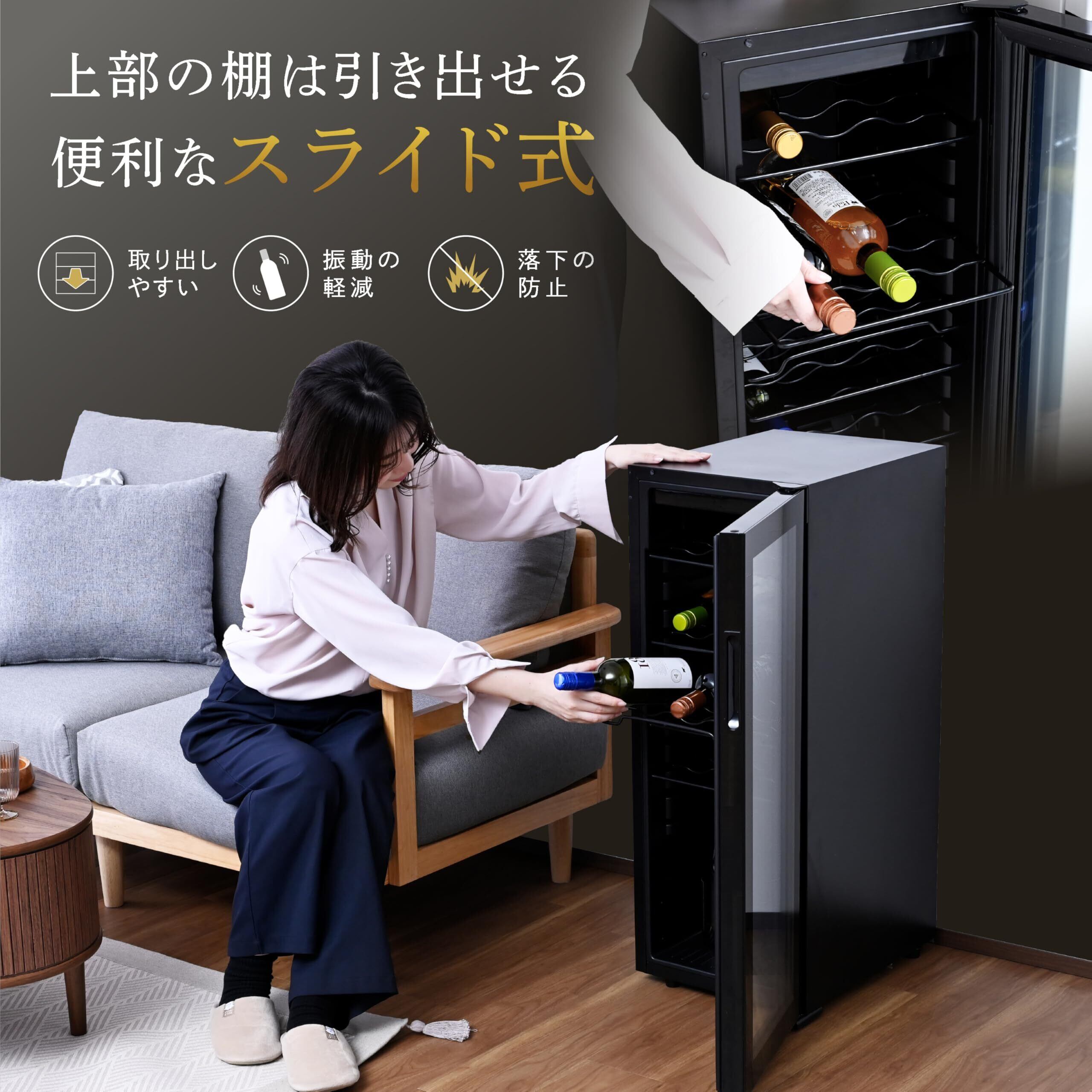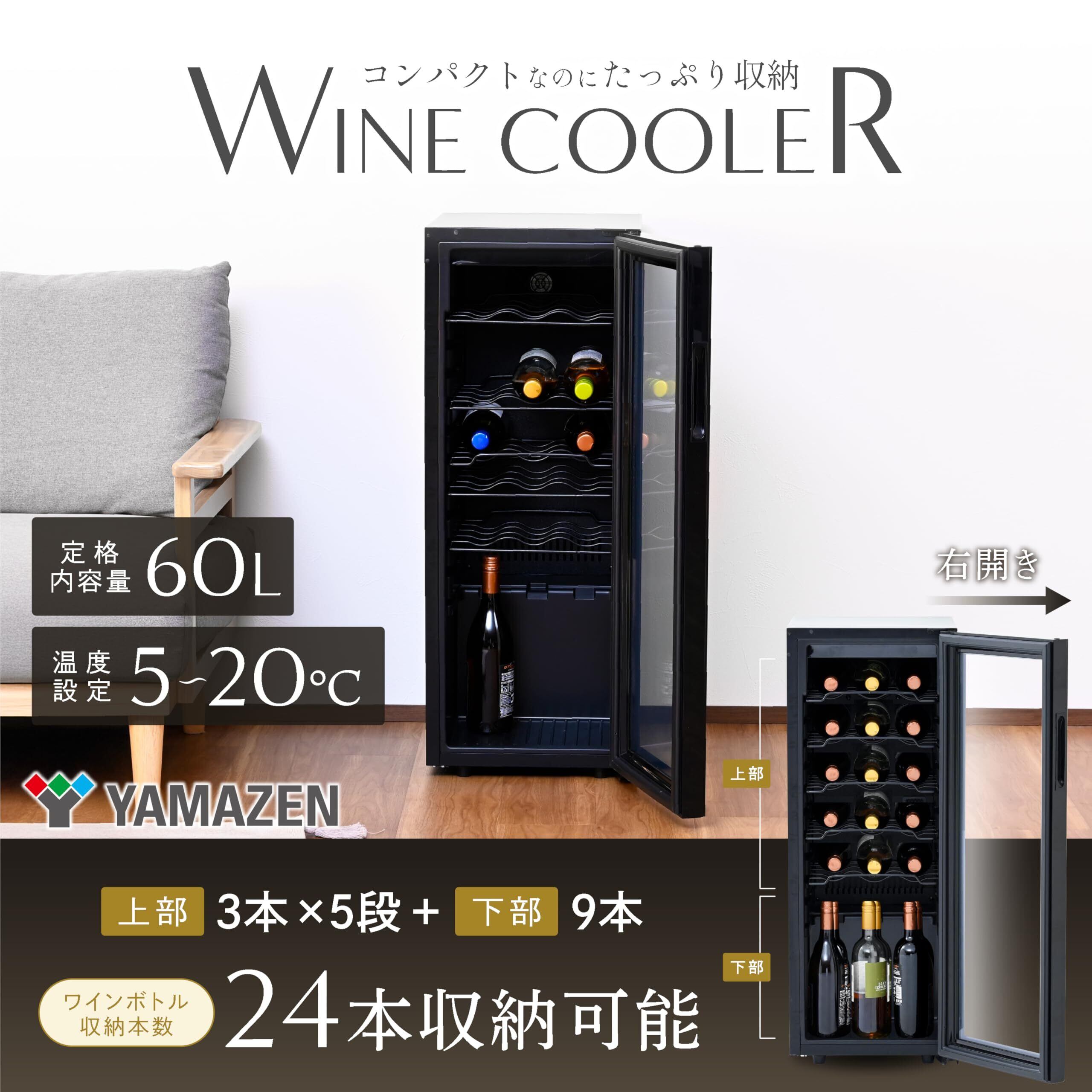 【在庫セール】[山善] ワインクーラー ワインセラー 24本収納 5棚 60L 5~20℃温度調節 摂氏/華氏切替機能 チャイルドロック LEDライト ブラック YFWC-60L(B)