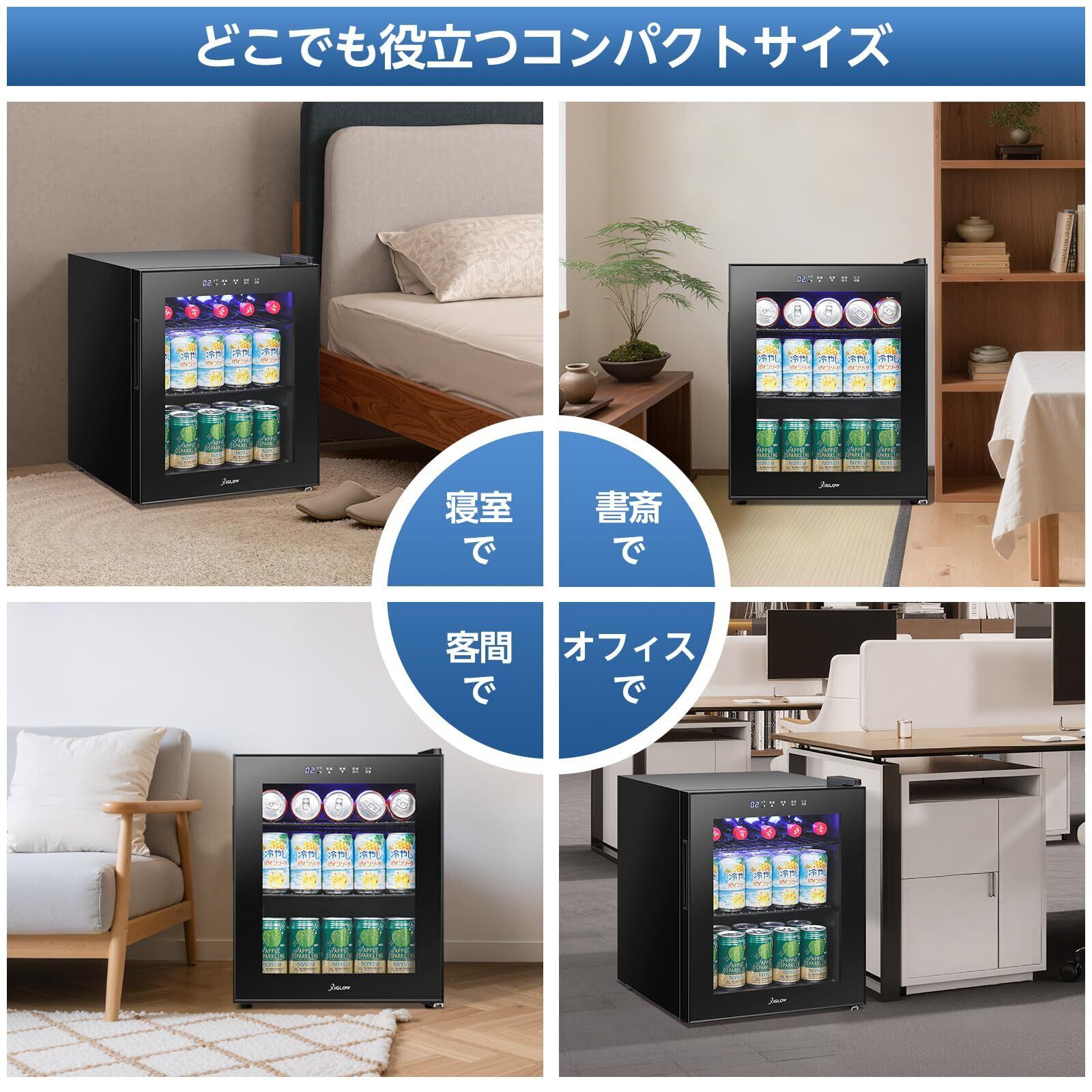 XiGLOW(シグロー) 45L 冷蔵庫 2~18℃ 展示用 ファン式 コンプレッサー 幅42cm タッチ式操作パネル 自動霜取り 1ドア 右開き ドリンク 静音 コンパクト 省スペース ガラスドア サブ冷蔵庫 庫内灯付き 省エネ 一人暮らし 家庭用 寝室 ゲーミング バー 寮 ホテル カラオケ レストラン カフェ おしゃれ ブラック