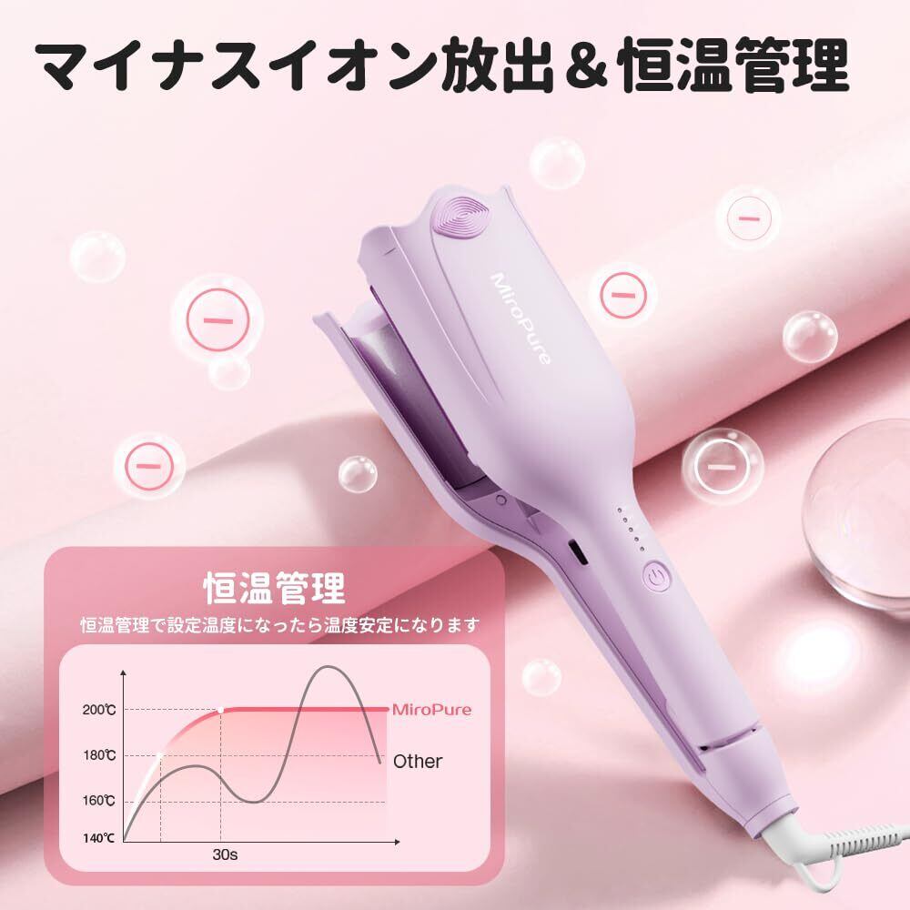 MiroPure ヘアアイロン カール ウェーブアイロン 34㎜ 挟むだけで可愛い カールアイロン 実現 140℃~200℃ 千万級マイナスイオン吹出 やけど防止 初心者向けカールアイロン プレゼントも最適 海外対応 PSE認証済 日本語取扱説明書付き パープル