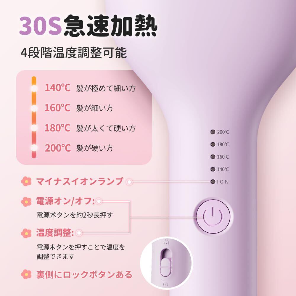 【在庫セール】MiroPure ヘアアイロン カール ウェーブアイロン 34㎜ 挟むだけで可愛い カールアイロン 実現 140℃~200℃ 千万級マイナスイオン吹出 やけど防止 初心者向けカールアイロン プレゼントも最適 海外対応 PSE認証済 日本語取扱説明書付き パープル