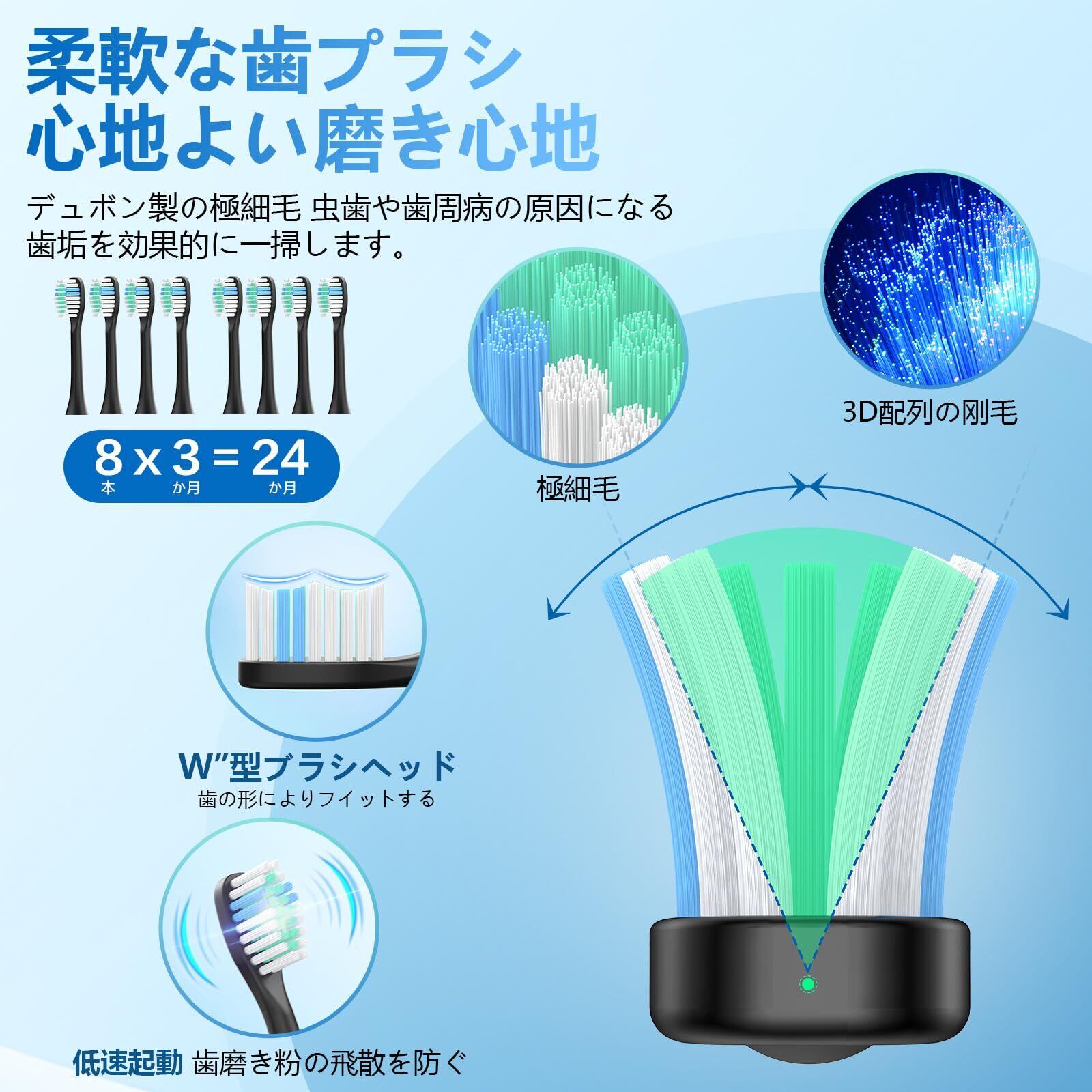 高周波音波清掃技術を採用し、歯の隙間や歯茎ラインを深層清掃。効果的に歯垢を除去し、清潔力を5倍にアップ。優れた振動で歯茎を優しくケアし、快適な歯磨き体験を提供します。音波の水流とブラシ毛が連携して、コーヒーやお茶などの頑固な汚れを迅速に取り除き、長時間白い歯を維持。歯のエナメル質の摩耗を減らし、清潔で爽やかな口腔を簡単に楽しめます。毎日精緻なケア効果を実感してください。