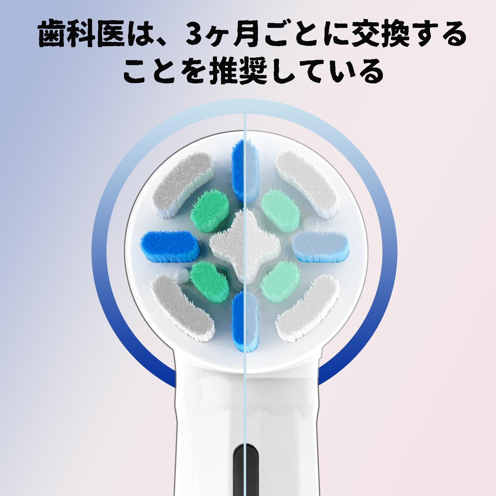 3ヶ月交換: 歯科医は3ヶ月ごとにブラシヘッドを交換することを推奨しています。定期的に交換することで、常に優れたクリーニング効果を発揮します