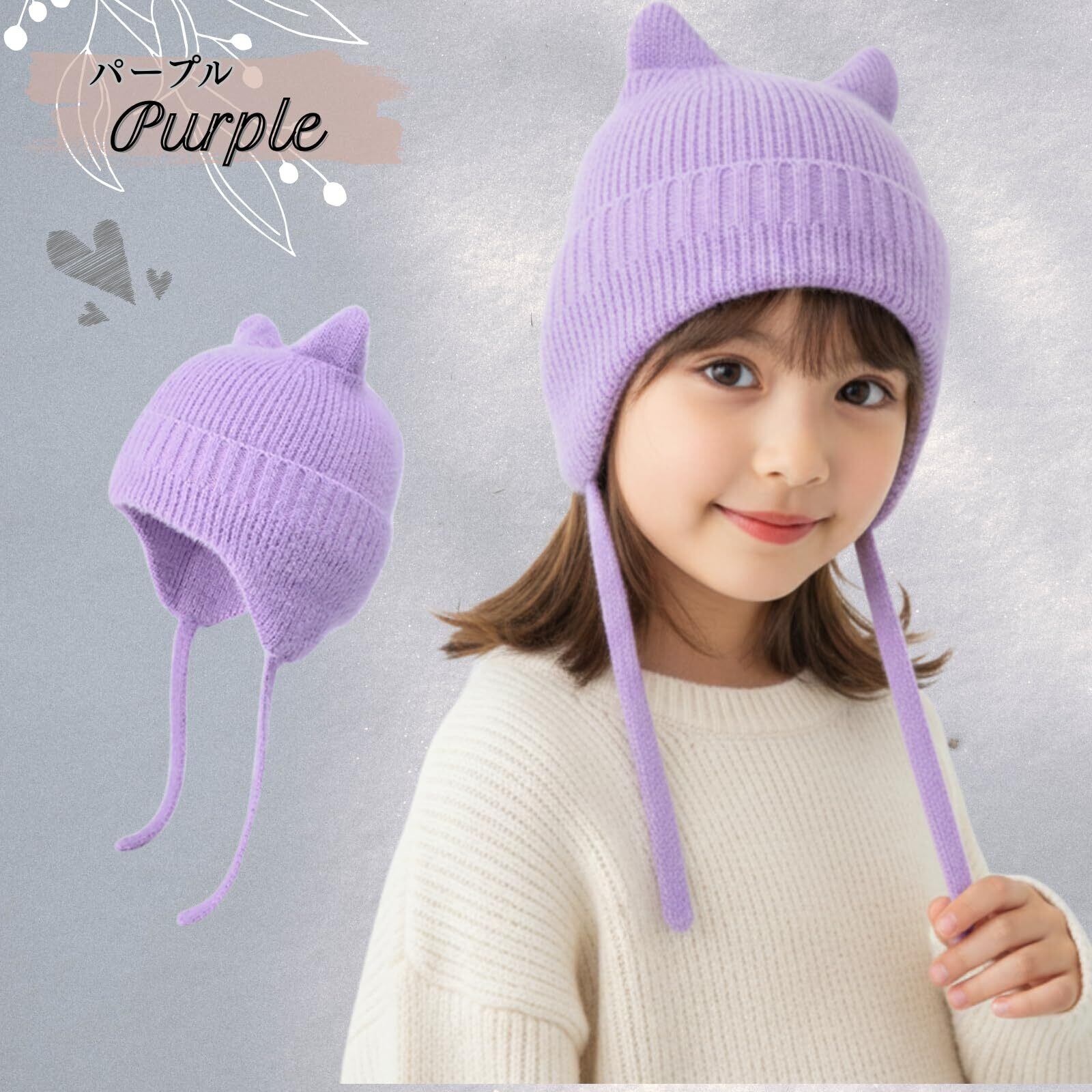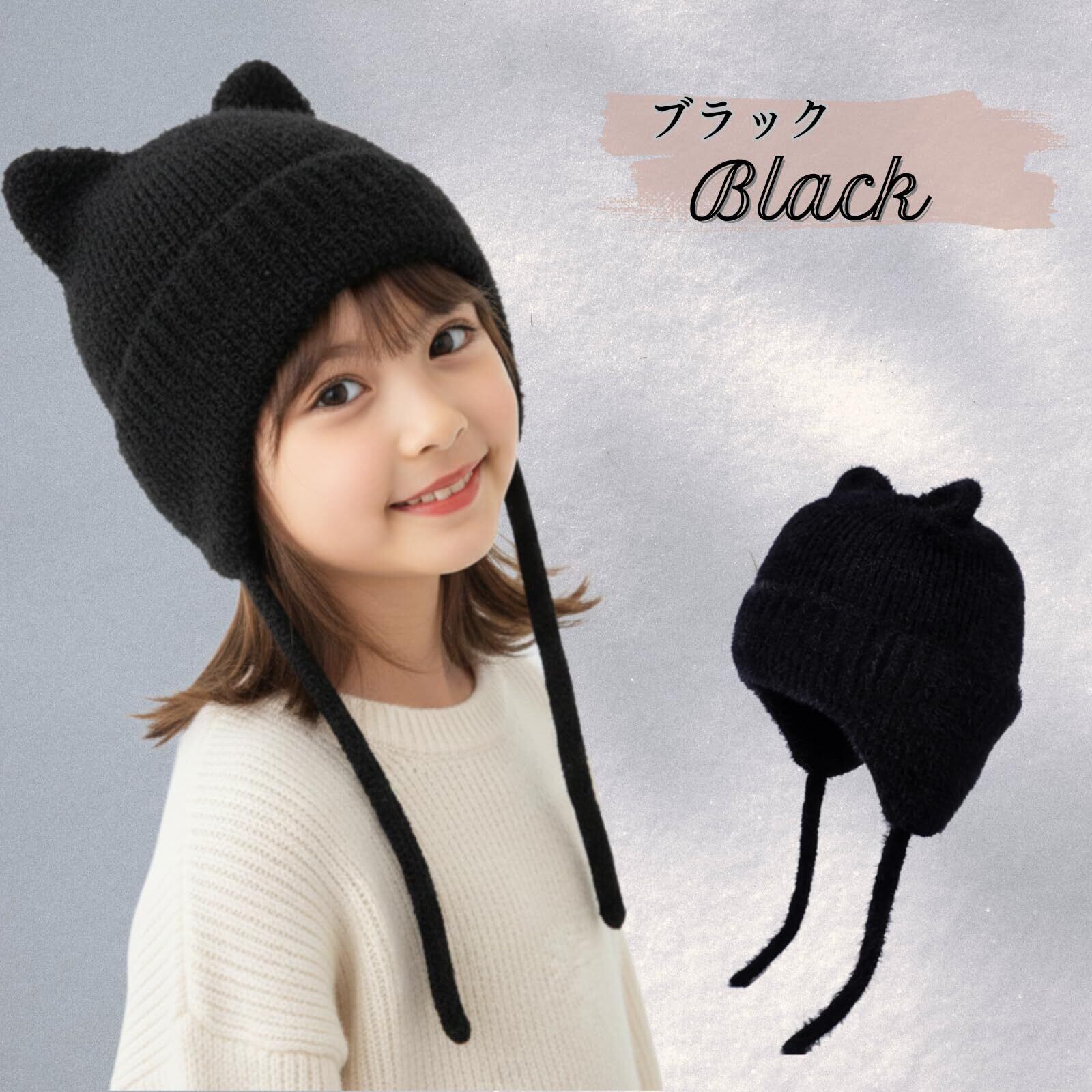 [Belle Iza Bella] ニット帽 キッズ 猫耳 ボンネット ハット 耳当て付き 防風 防寒 子供 帽子 あったか ワッチ キャップ シンプル