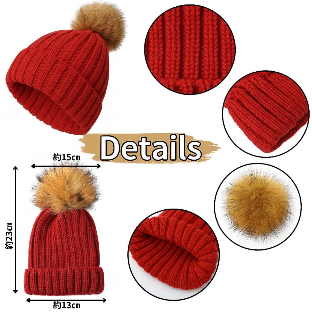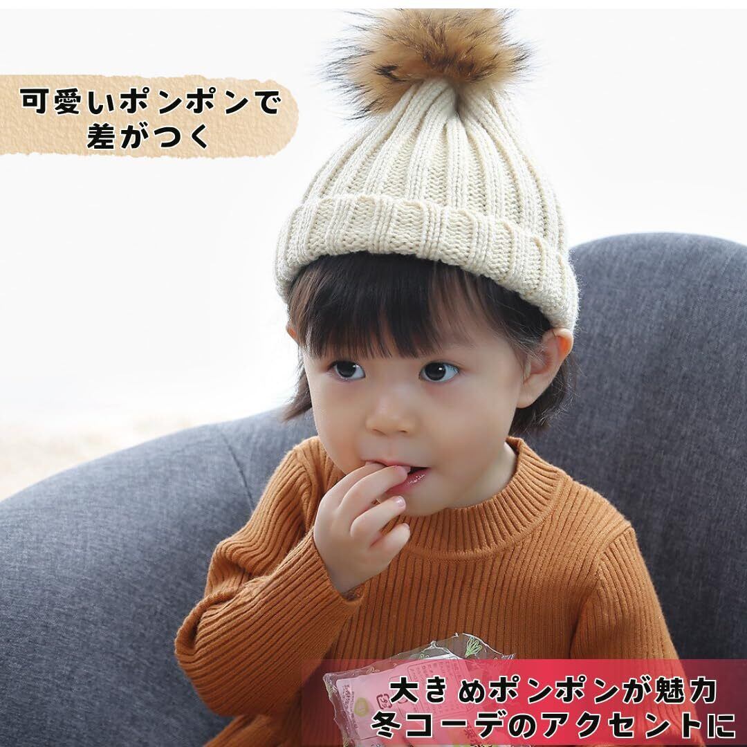 [Capprecier] 子供用 ニット帽 ポンポン付き ビーニー 帽子 キッズ 冬用 防寒 あったか かわいい 女の子 男の子 ウール 厚手 折り返し リブ編み プレゼント 5色展開