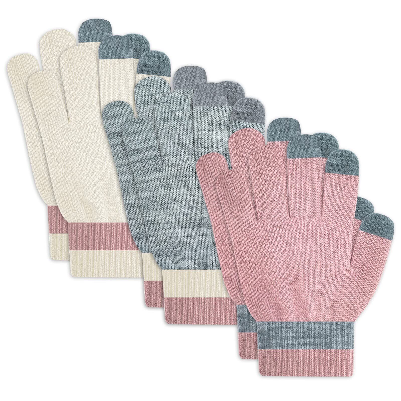 [夢の物] 3色組 ニット手袋 子供 男の子 女の子 キッズのびのび手袋 スマホ対応 五本指 厚手 通園 通学 雪遊び アウトドア 秋冬 防寒 防風 あったかい