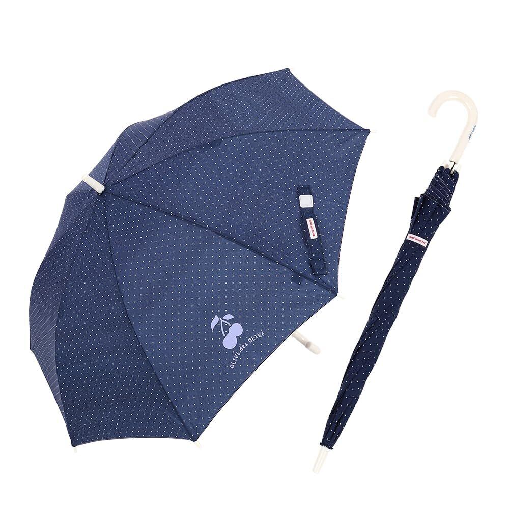 【数量限定】小川(Ogawa) キッズ長傘 ジャンプ式 58cm 8本骨 OLIVE des OLIVE ネイビー ドット ワンポイントロゴ 抗菌手元 はっ水 70995