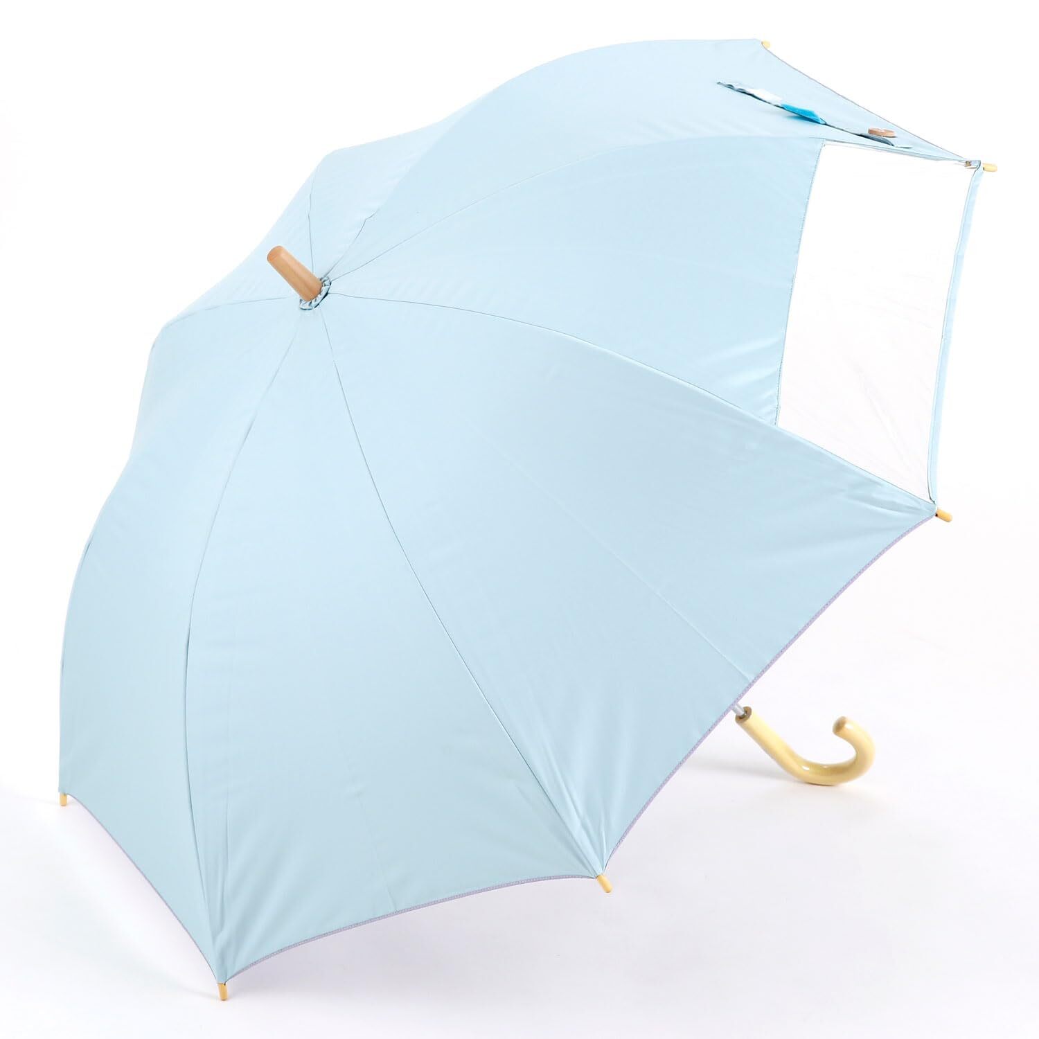 傘の生地部分は、裏面にポリウレタンコーティングがしてあり、UVカット、遮熱遮光加工もばっちり。はっ水加工も施されているので、雨の日でも使える日傘になっています。