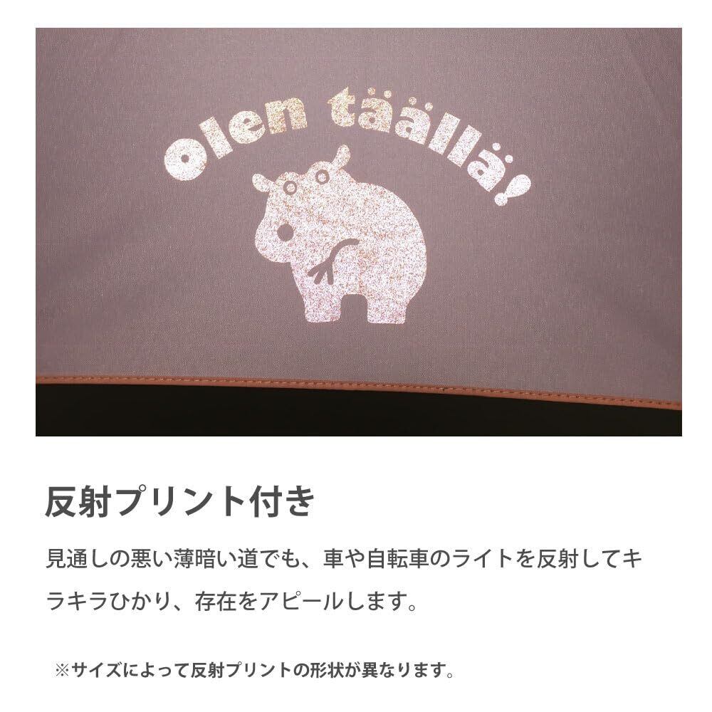 一コマ傘の裾に透明窓がついており、前が見やすくなっています。反対側にはカバさんマークの反射プリントがついており、暗い場所でライトなどの光が当たると光るので、夜道でも安心です。
