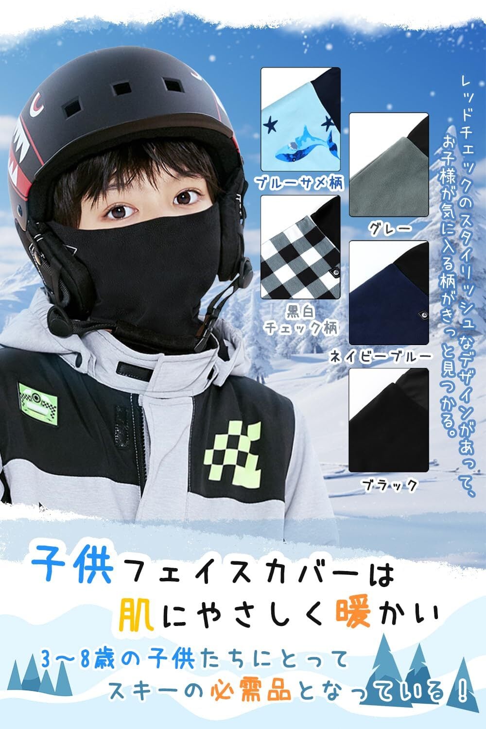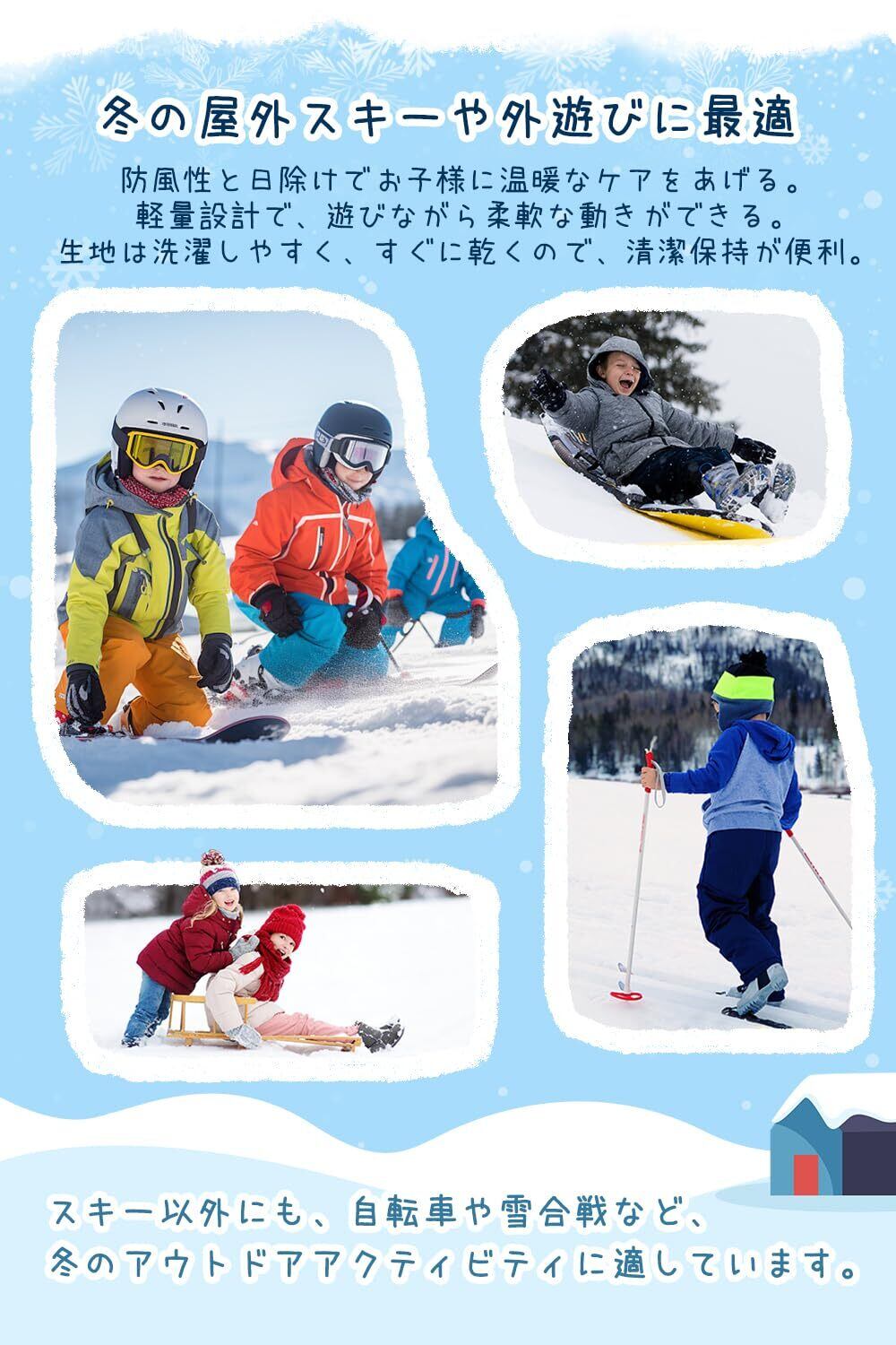 【寒さ対策バラクラバ キッズ 冬用】子供用防寒バラクラバは、3歳~7歳のお子様は快適に冬を過ごすように、暖かい装着感を提供します。フワフワ暖かいな生地、肌に優しい、暖かさを逃がさない素材で特有な断熱性、外部の風を遮断して、寒さから子供の頭、耳、顔と首を全面守ります。