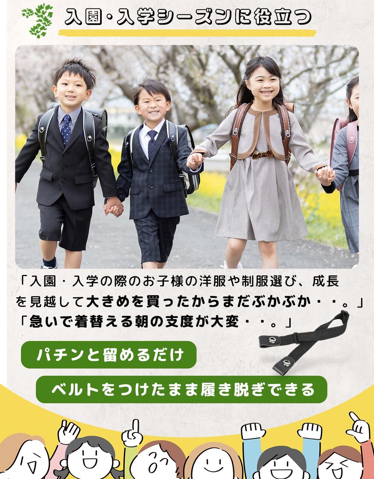 [Lelotte] キッズベルト 子供 ゴム ベルト 【トイレ簡単・着脱ラク】 バックルなし 無段階調整 ボタン式 子供用ベルト 入園 入学 幼稚園 小学生