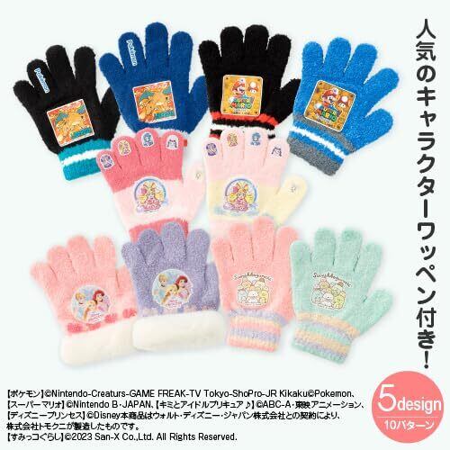 [GlovesDEPO] キッズ キャラクター手袋 ニット 5本指タイプ (ポケットモンスター/スーパーマリオ/プリキュア/ディズニーPrincess/すみっコぐらし)