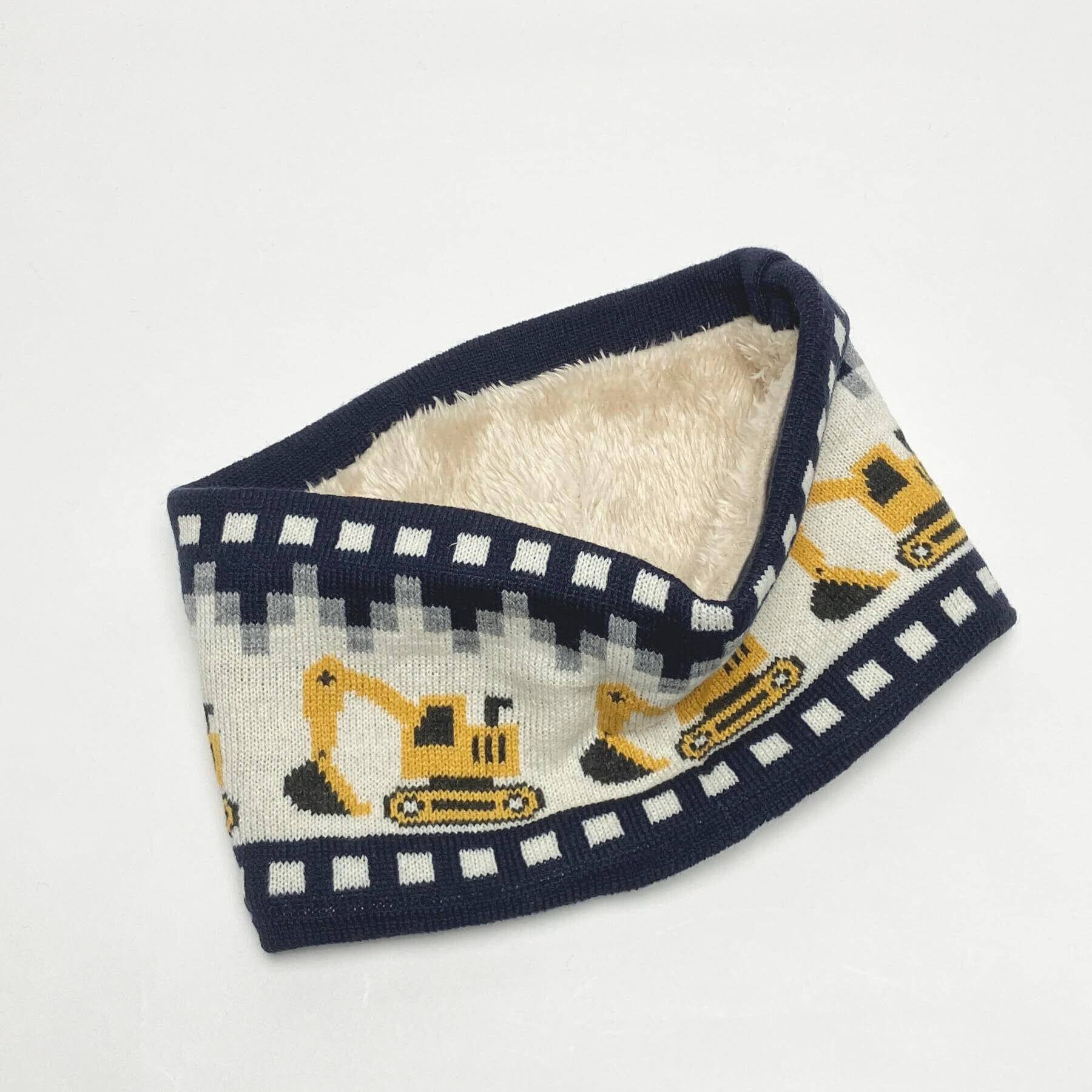 [kiejun] ネックウォーマー キッズ 子供 ボア ニット スヌード マフラー 働く車 建機 防寒 防風 男の子