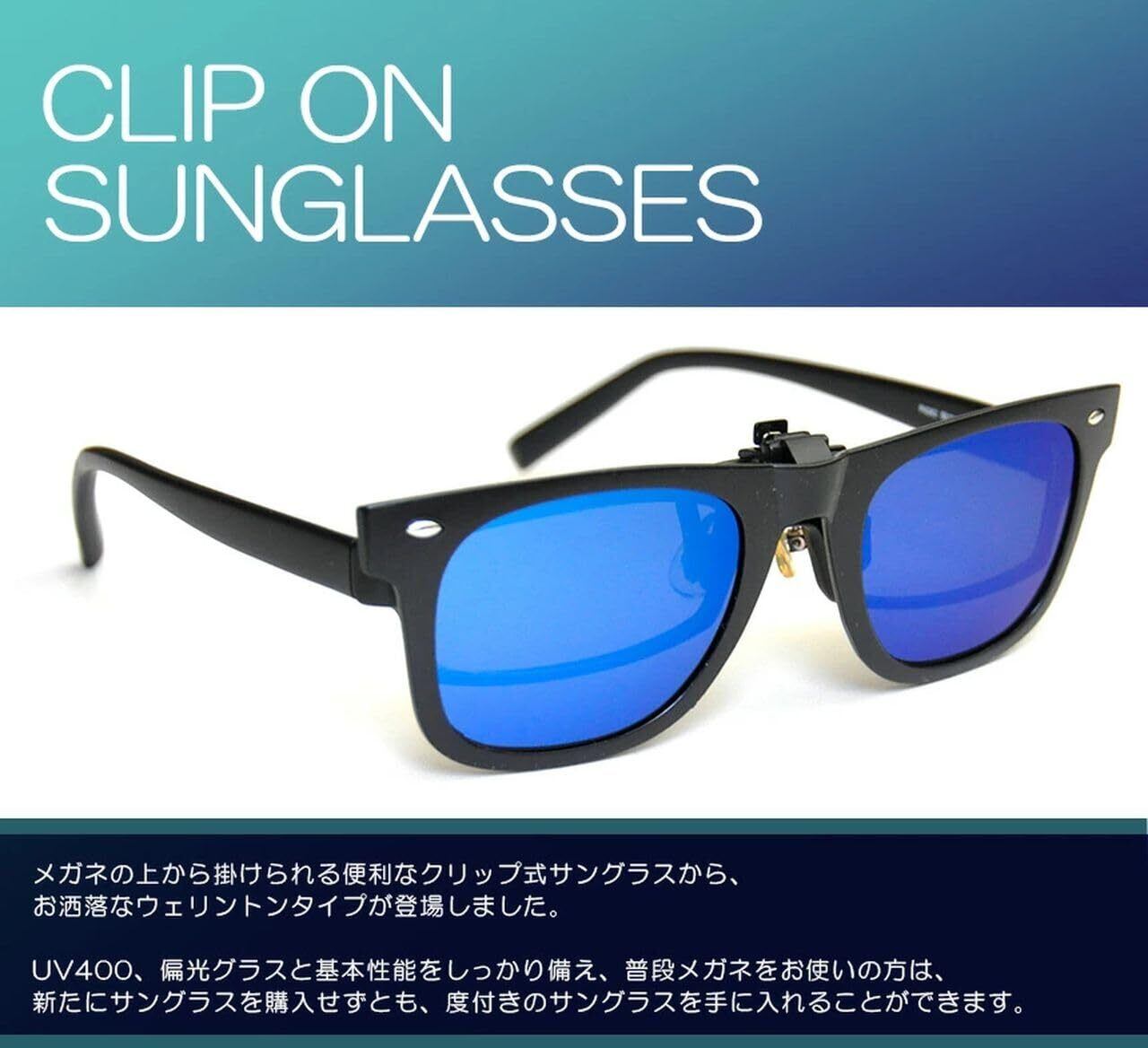 【眼鏡の上から掛けられる】おしゃれなウェリントンタイプのクリップ式サングラス