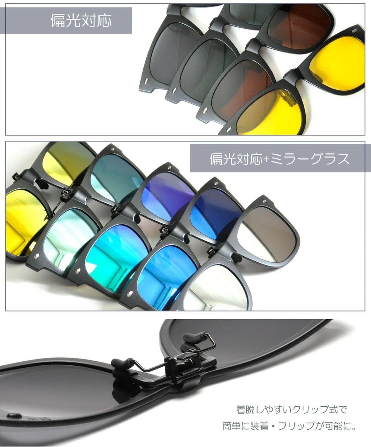 【2022最新】[GOODYSHOP] 9カラー クリップオン サングラス メンズ レディース 跳ね上げ 軽量 偏光 ウェリントン UVカット GD-CLGL