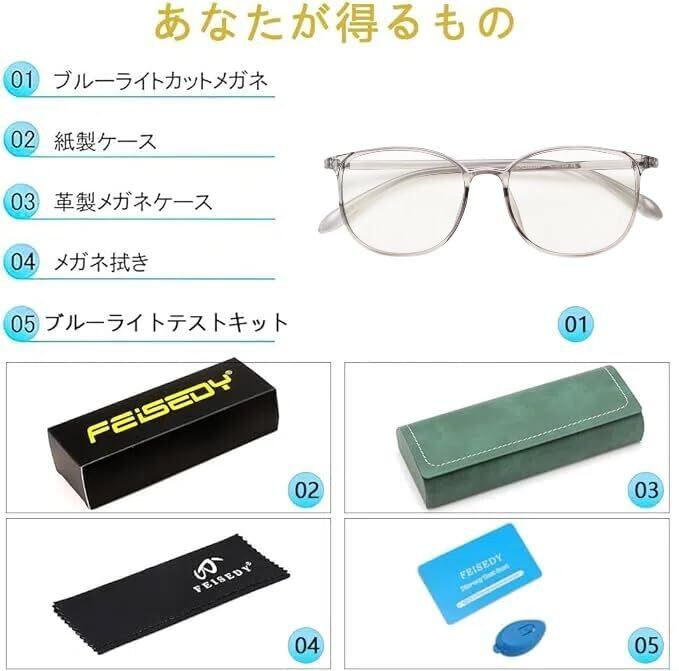 [FEISEDY] ブルーライトカットメガネ 紫外線カット UV400 透明レンズ TR90フレーム 視力保護 パソコン用 度なし おしゃれ 韓国 男女兼用 B1136