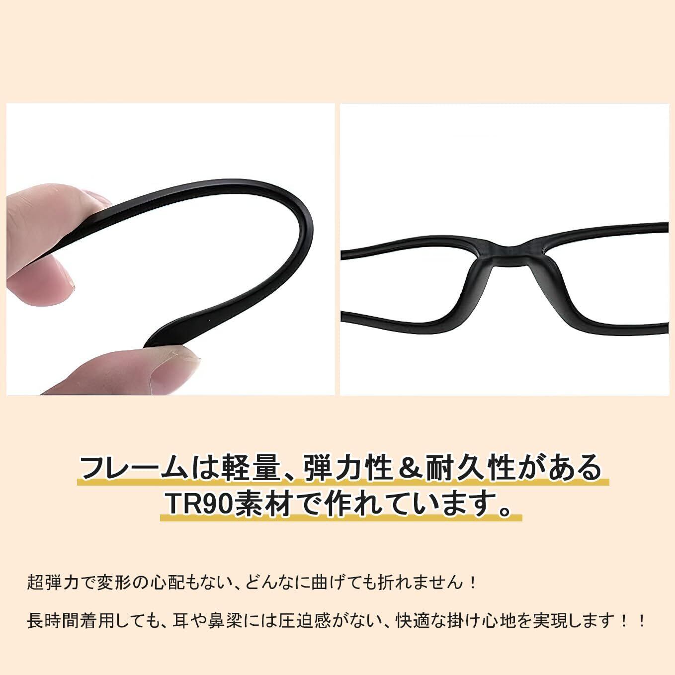 上質なTR90素材:軽量なTR90素材を採用して、長時間の着用しても痛くなりにくく、鼻や耳への負担を軽減 します。更に、柔軟性や耐久性を兼ね備えて、肌触りもよくて、快適なフィット感をご提供しております