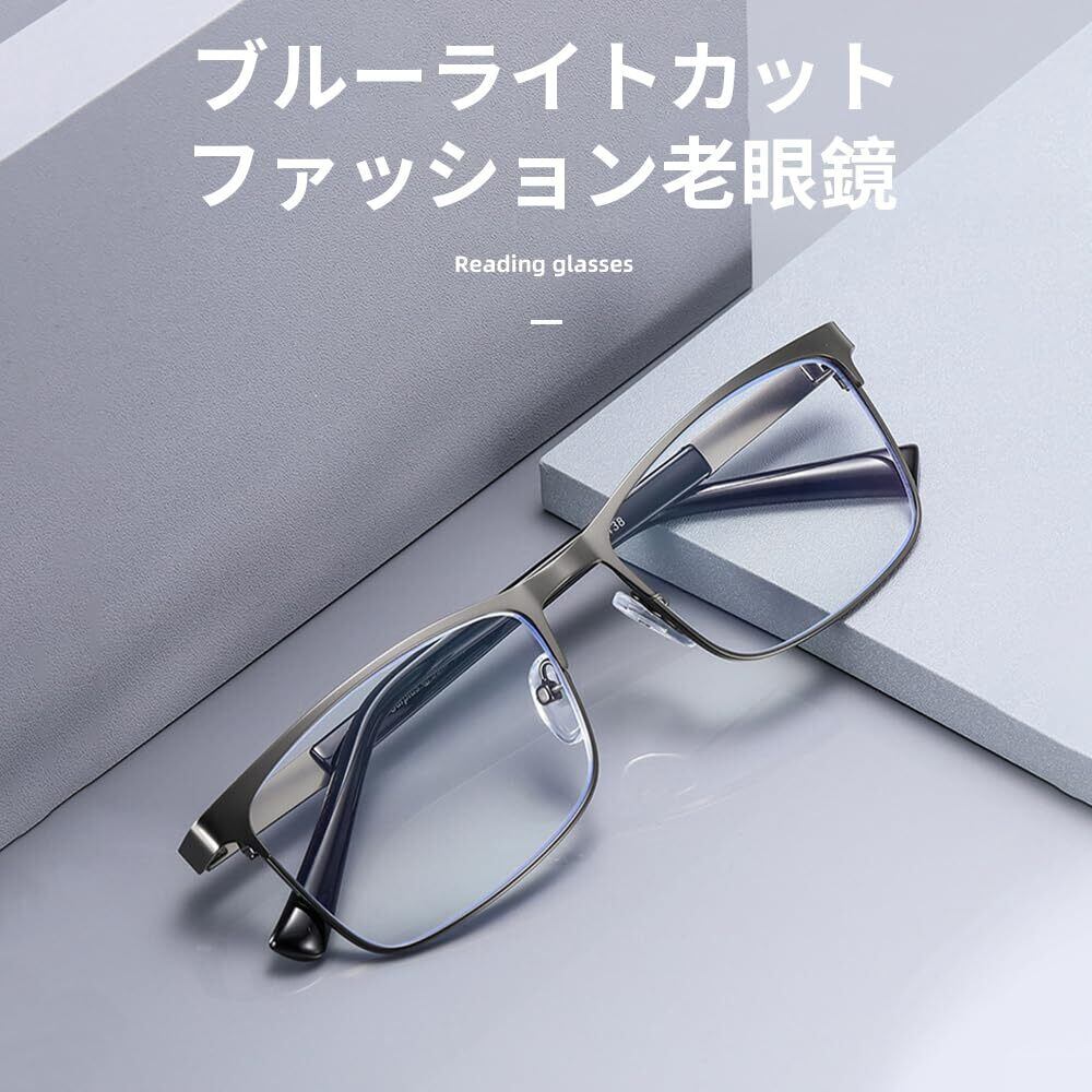 [FEISEDY] 老眼鏡 メンズ おしゃれ ブルーライトカット シニアグラス 軽量 ハーフリム リーディンググラス 単焦点 メタル 紫外線カット 格好いい ケース付き B1452