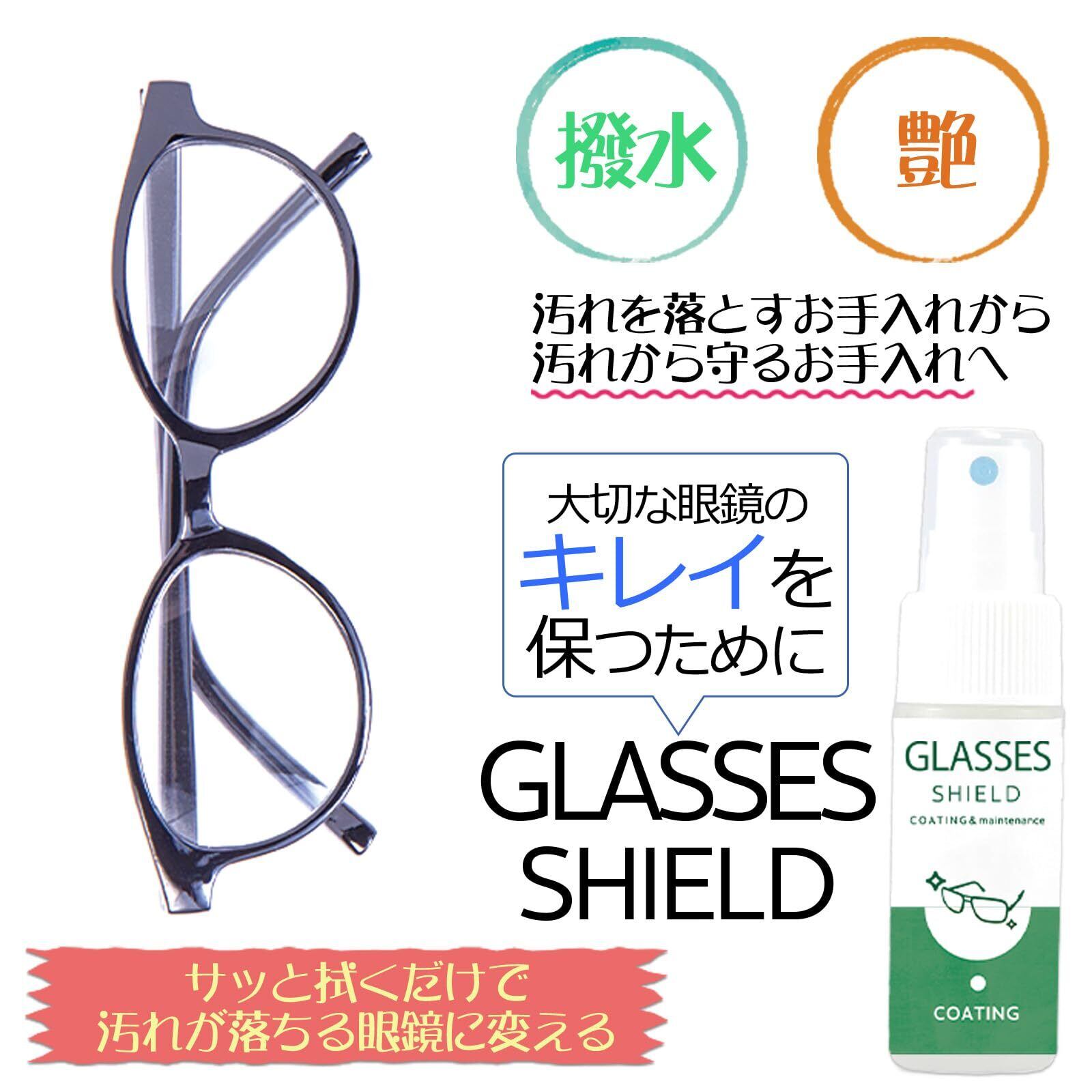 SHIELD メガネ クリーナー スプレー コーティング剤 指紋防止 撥水 メガネ拭き付き ふきふき対応 ブルーライトカット 偏光レンズ サングラス ゴーグル くもり止め併用可 30ml 日本製