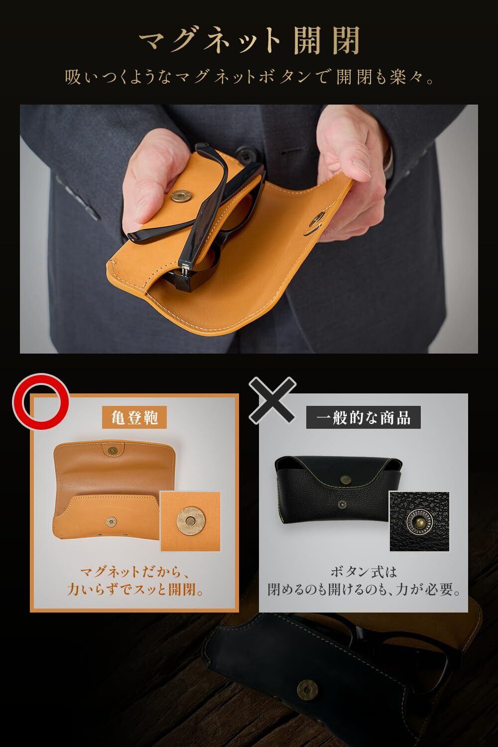 【人気商品】[亀登鞄製作所] メガネケース 本革 (贅沢な上質レザー x 匠の技 ( 大切な眼鏡・サングラスを美しく収納) サングラスケース 眼鏡ケース (軽量 コンパクト で毎日携帯しやすい) おしゃれ サングラス ケース 持ち歩き ギフト