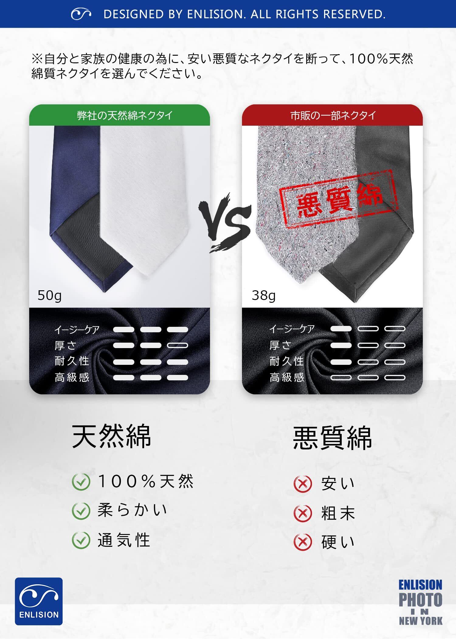 【1200針高密度】当社のネクタイは高密度混紡技術を使用しています。1cm²あたり1200本以上の糸を織り込み、ポリエステルとシルクを複雑に混ぜ合わせて生地を作り出しています。ポリエステルのしわになりにくさの特徴を兼ね備え、シルクの光沢もあり、角度によって異なる色を表現することで高級感を出しています。手触りや質感、耐久性も優れています。