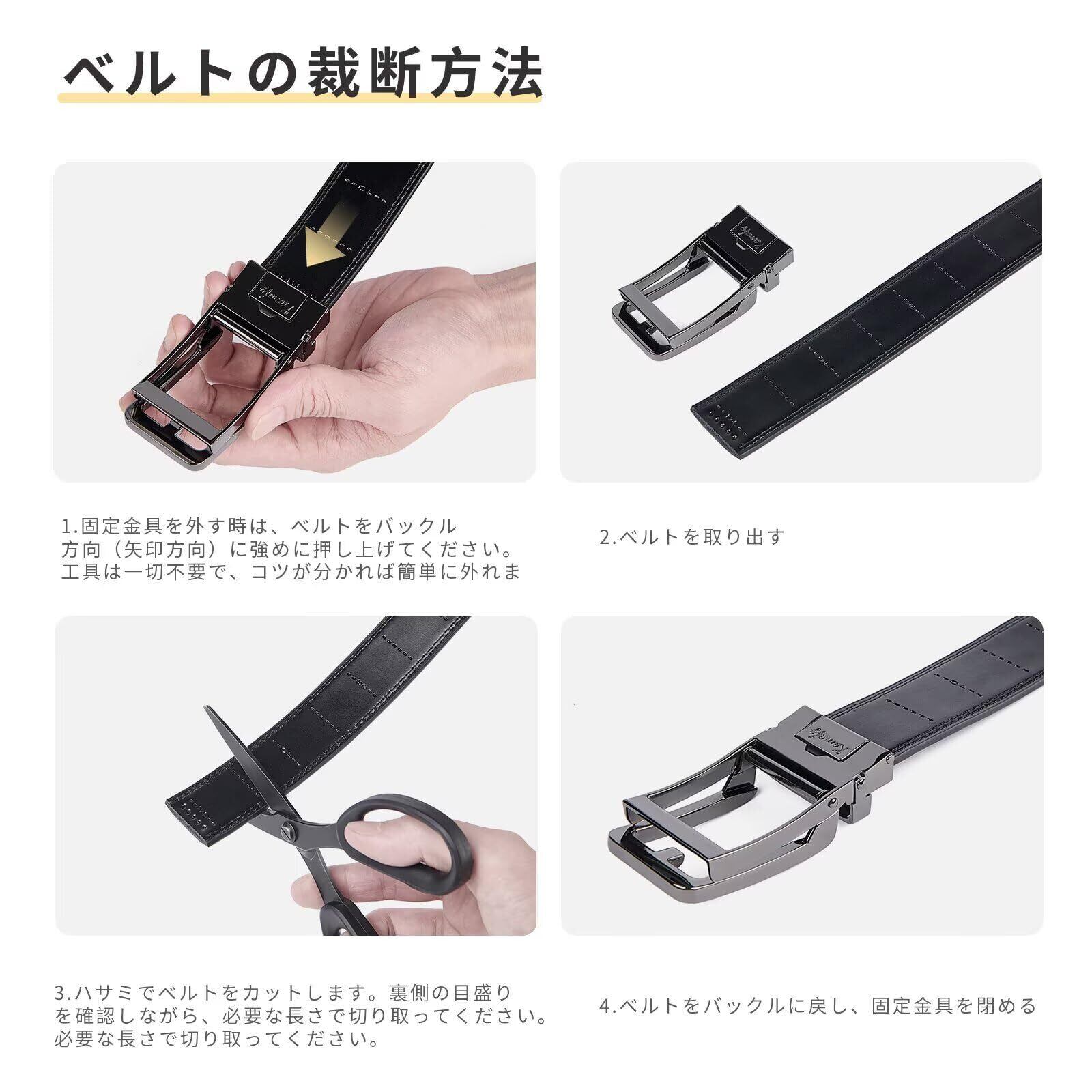 [kamafy] ベルト メンズ スーツ ビジネス 紳士ベルト 本革 革ベルト オートロック 無段階調整 穴なし 多サイズ 箱付き
