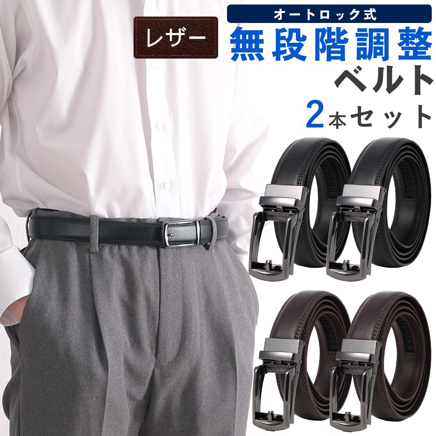 [VILAU] ベルト メンズ 2本セット 【専用工具付属】 穴なし オートロック ビジネス 大きいサイズ 無段階