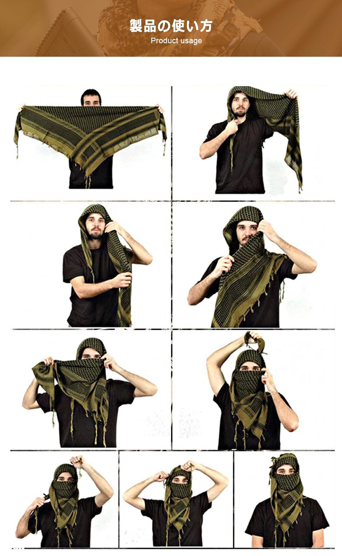 [Perturga] アラブスカーフ マフラー ストール タクティカル ミリタリー アフガン サバゲー コットン チェック柄 シュマーグ 男女兼用 スカーフ オールシーズン