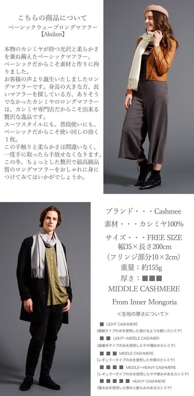 【特価セール】Cashmee カシミヤ 100% ベーシックウェーブ ロング マフラー/Alnilam 7color』ありそうでなかった カシミア 100% ロング マフラー