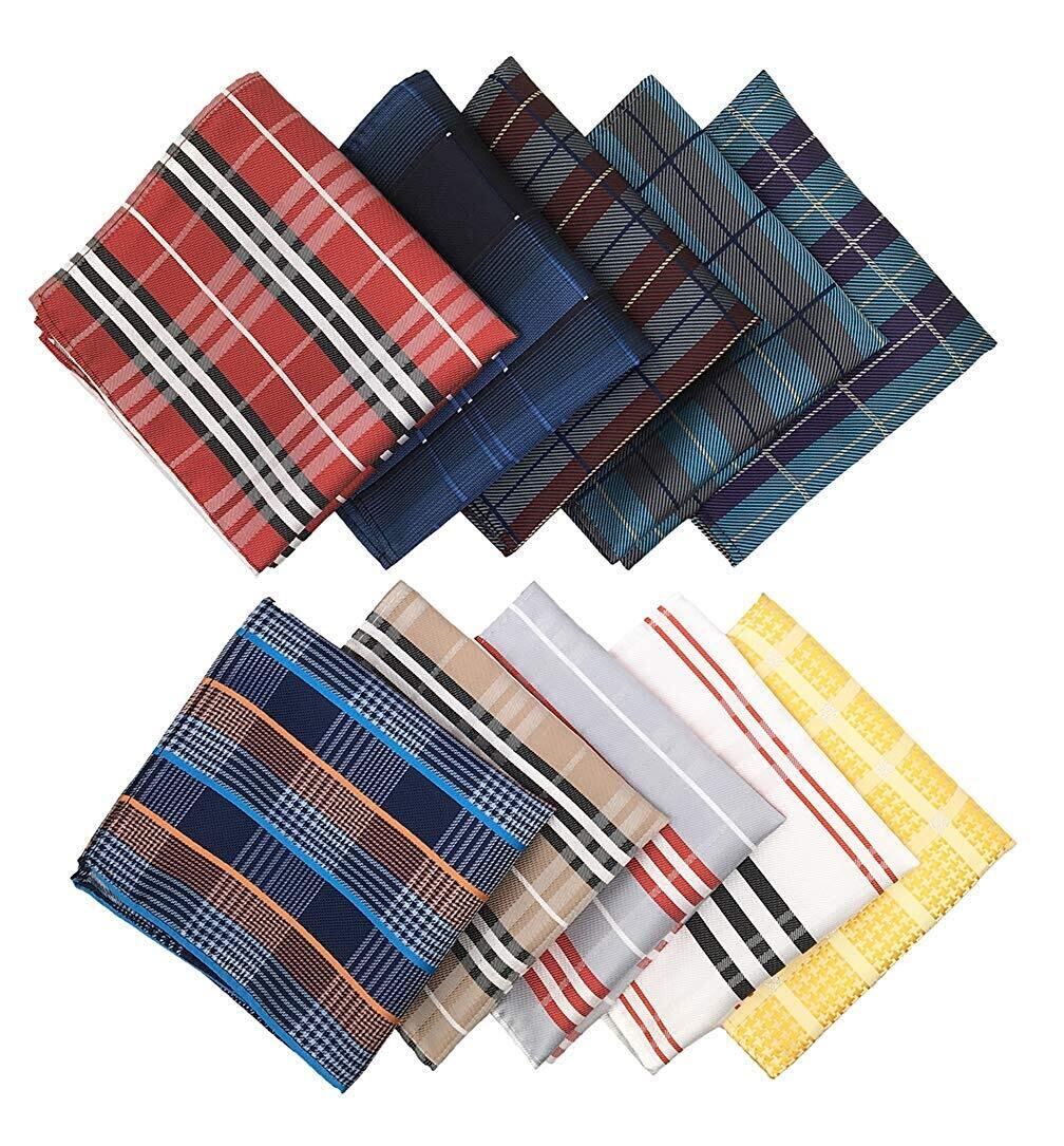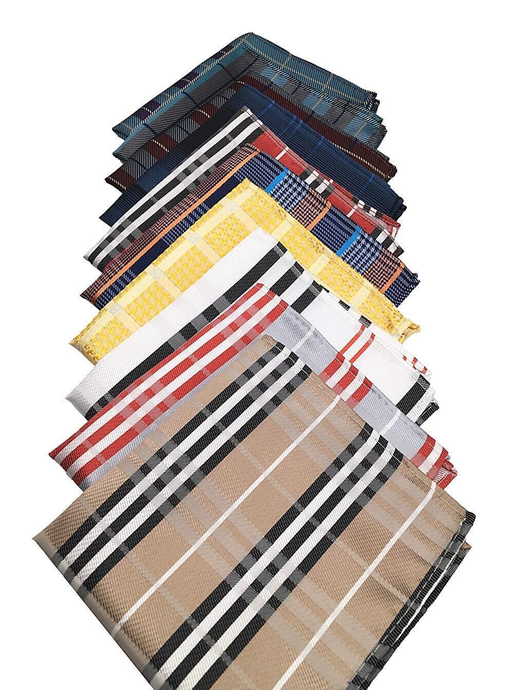 MENDENG ポケットチーフ 10枚セット いろんな柄 シルク メンズ お得 プレゼント ペイズリー チェック ストライプ おしゃれ ハンカチ 結婚式 おしゃれ 紳士