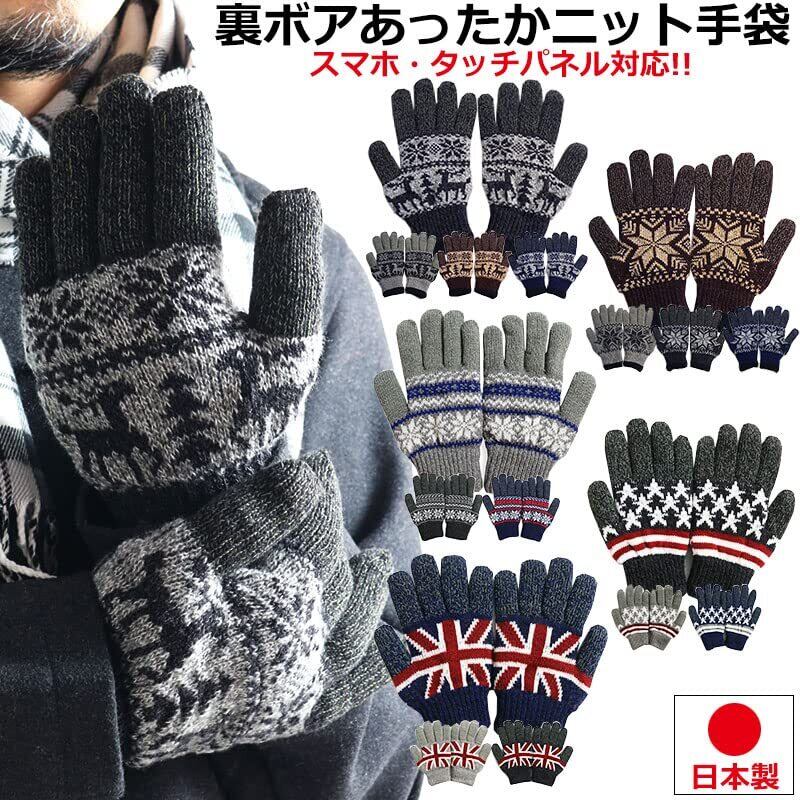 [クインテット] 手袋 メンズ レディース 日本製 スマホ タッチパネル 対応 ノルディック ニット グローブ アニマル柄 雪柄 トナカイ 鹿 アメリカ イギリス ユニオンジャック 国旗 03-0260