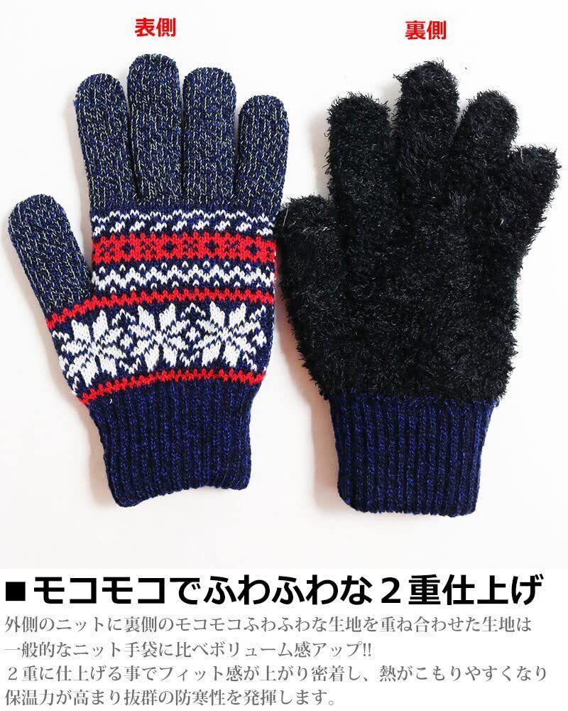 【タッチパネル対応】 新素材の『伝導ニット』が体内の微弱な静電気を伝導しスマホやポーダブルPCを手袋したまま操作を可能にしました。 【裏地もあったか】 裏地にはウォーム感抜群の『モッコモコフリース』を使用、冬の寒さから手を守ります