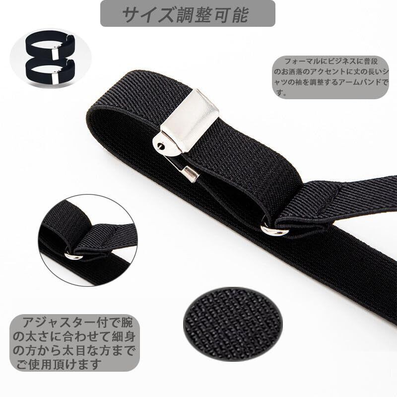【着脱簡単”で効率的な袖丈調整】締め付け感が少なく伸びが良いので、袖が長いワイシャツに簡単に対応。腕に通すだけで素早く袖丈を調整でき、忙しい朝でも効率的に使えます。フォーマルシーンでは必須のアイテムで、細かい所まで気を配れる男性として是非装着をお勧めします。