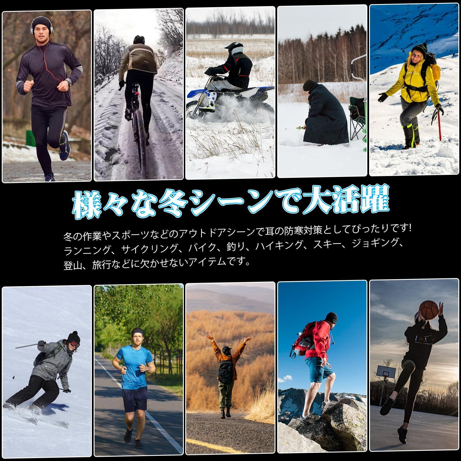【様々なシーンで大活躍】日常生活はもちろん、冬の作業やスポーツなどのアウトドアシーンで耳の防寒対策としてもぴったりです!ランニング、サイクリング、バイク、釣り、ハイキング、スキー、ジョギング、登山、旅行などに欠かせないアイテムです。
