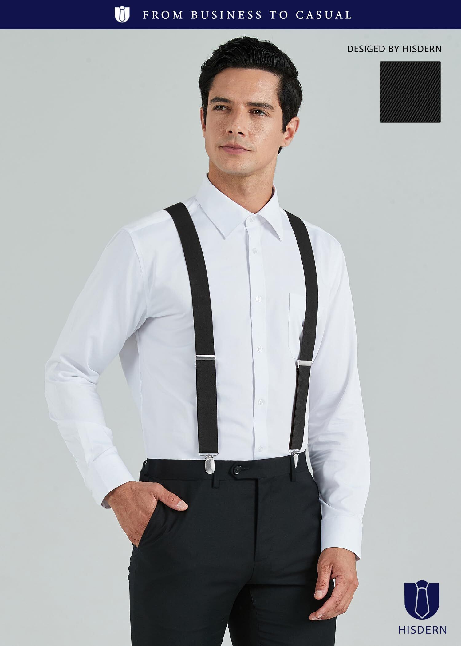 [HISDERN] Y-01 サスペンダー Y型 35mm 男女兼用 四つ クリップ 素早い脱着 ボックス付き 錆びない 革 肩への負担軽減 吊りバンド ビジネス カジュアル