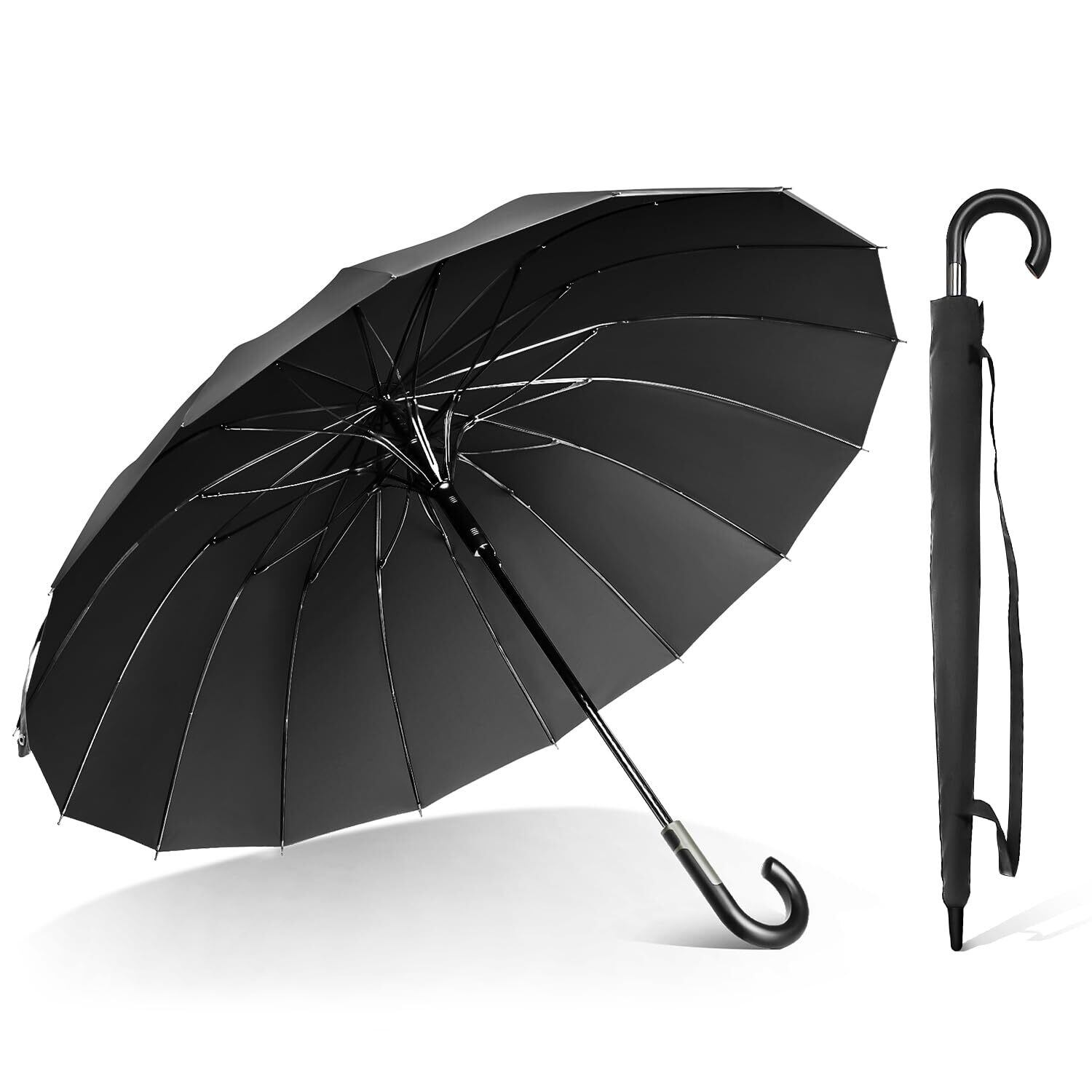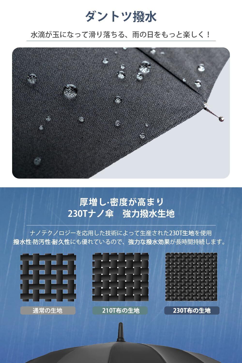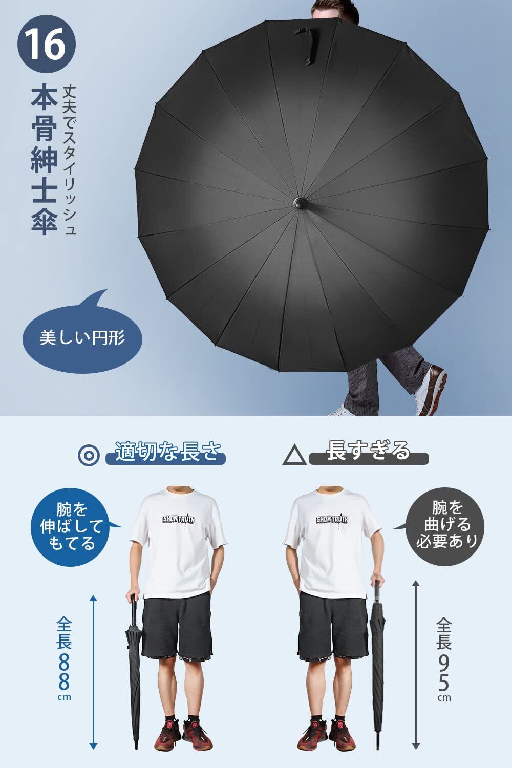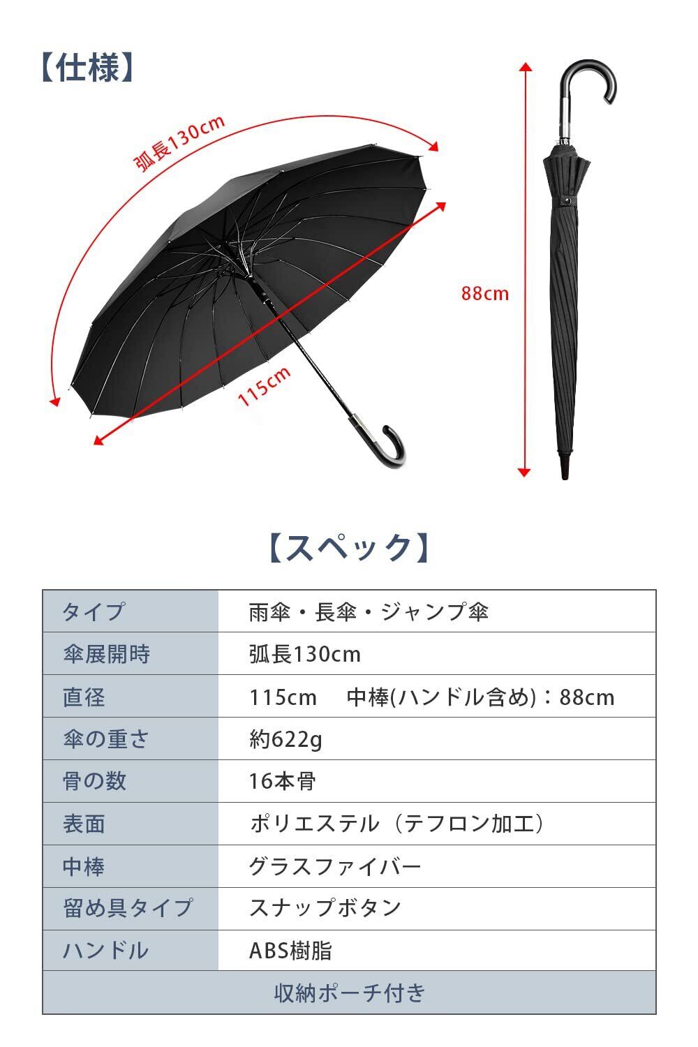 傘 メンズ 長傘 【高強度16本骨・超大サイズ】 直径115cm ジャンプ傘 大きい 230T超撥水 雨傘 丈夫なグラスファイバー 耐風傘 ワンタッチ 自動開け 埋め込みボタン 晴雨兼用 紳士傘 軽量 メンズ レディース 豪雨 梅雨対策 台風対応 男女兼用 収納カバー付き