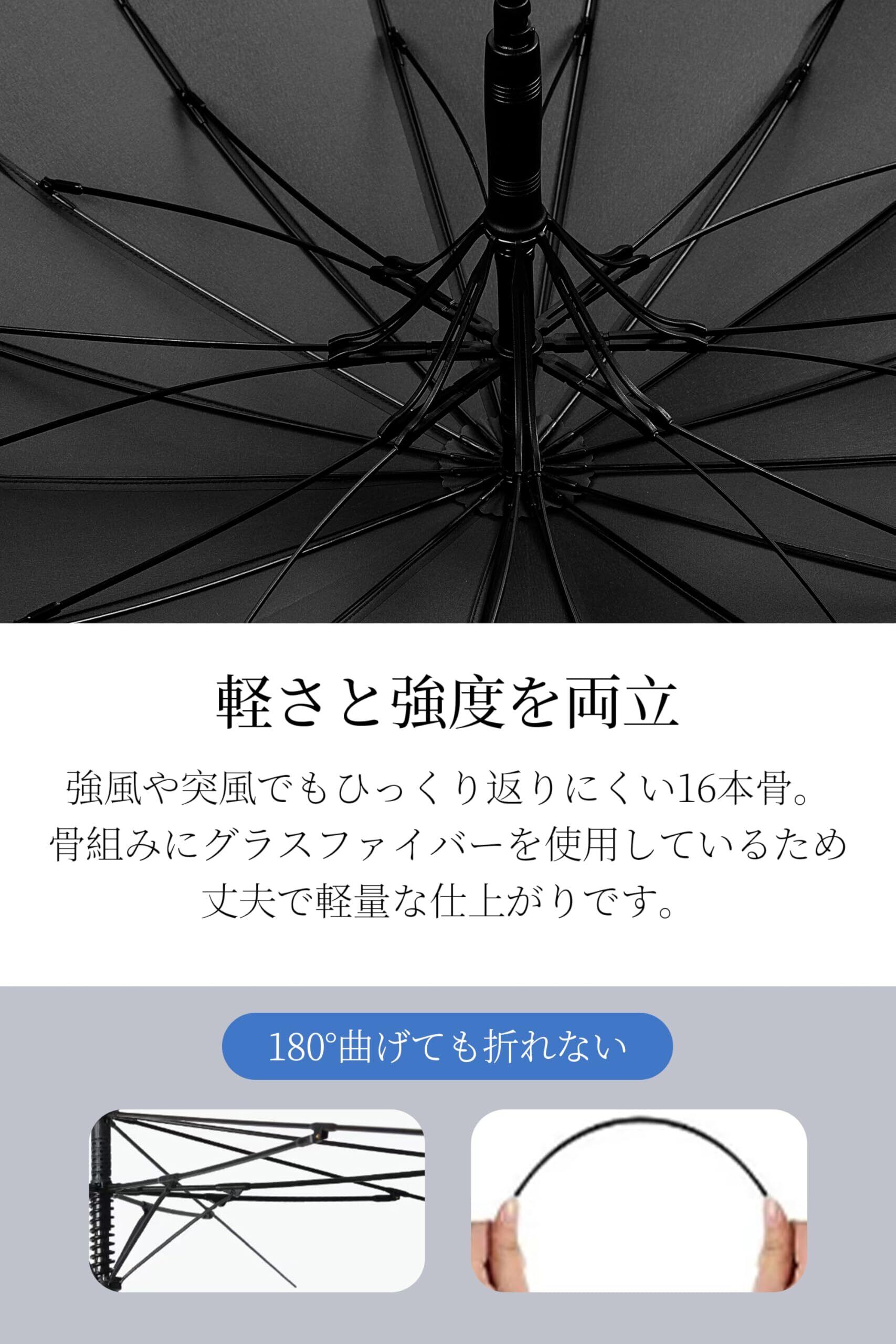 【強風でも安心の16本骨】強風や突風でもひっくり返りにくい16本骨。親骨にカーボンを使用しているため丈夫で軽量な仕上がりです。