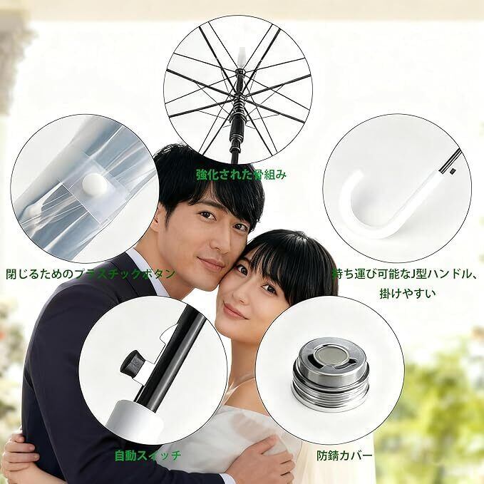 【高耐風設計】ビニール傘は、強風にも耐える耐風構造の伞骨を使用しており、逆さになっても壊れにくく、長時間使用できます。軽量のガラス繊維伞骨で、耐久性も抜群です。