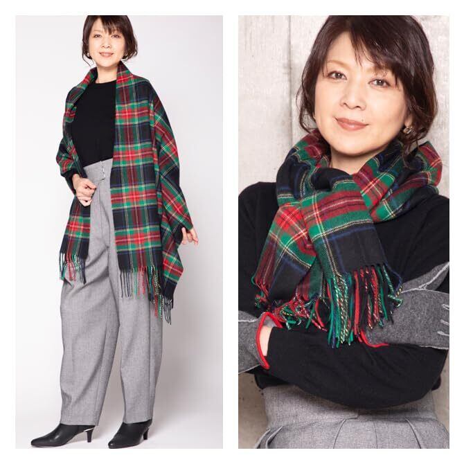 [Cashmee] NOCH70 飯島直子さんコラボ企画 .N カシミヤ ストール 至高の品質 カシミヤ100% タータンチェック ウェーブ 大判ストール チェック レディース メンズ