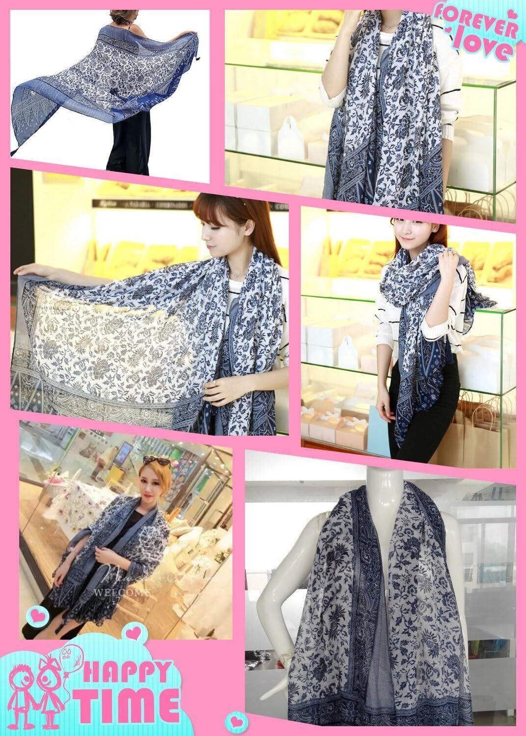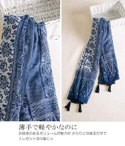 【新着商品】ストール 大判 薄手 マフラー レディース 青 スカーフ 大判 ショール ネイビー 花柄 春夏 秋冬 小顔効果 巻き物 肩掛け 母の日 プレゼント 冷房対策 日焼け防止 UV対策 春物 (ブルー)