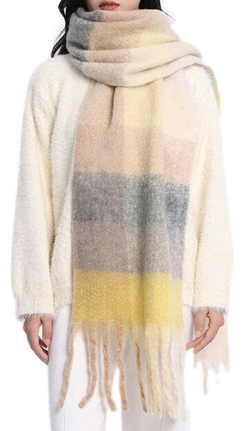 フリンジデザイン: 両端にフリンジが付いており、おしゃれなアクセントを添えています。