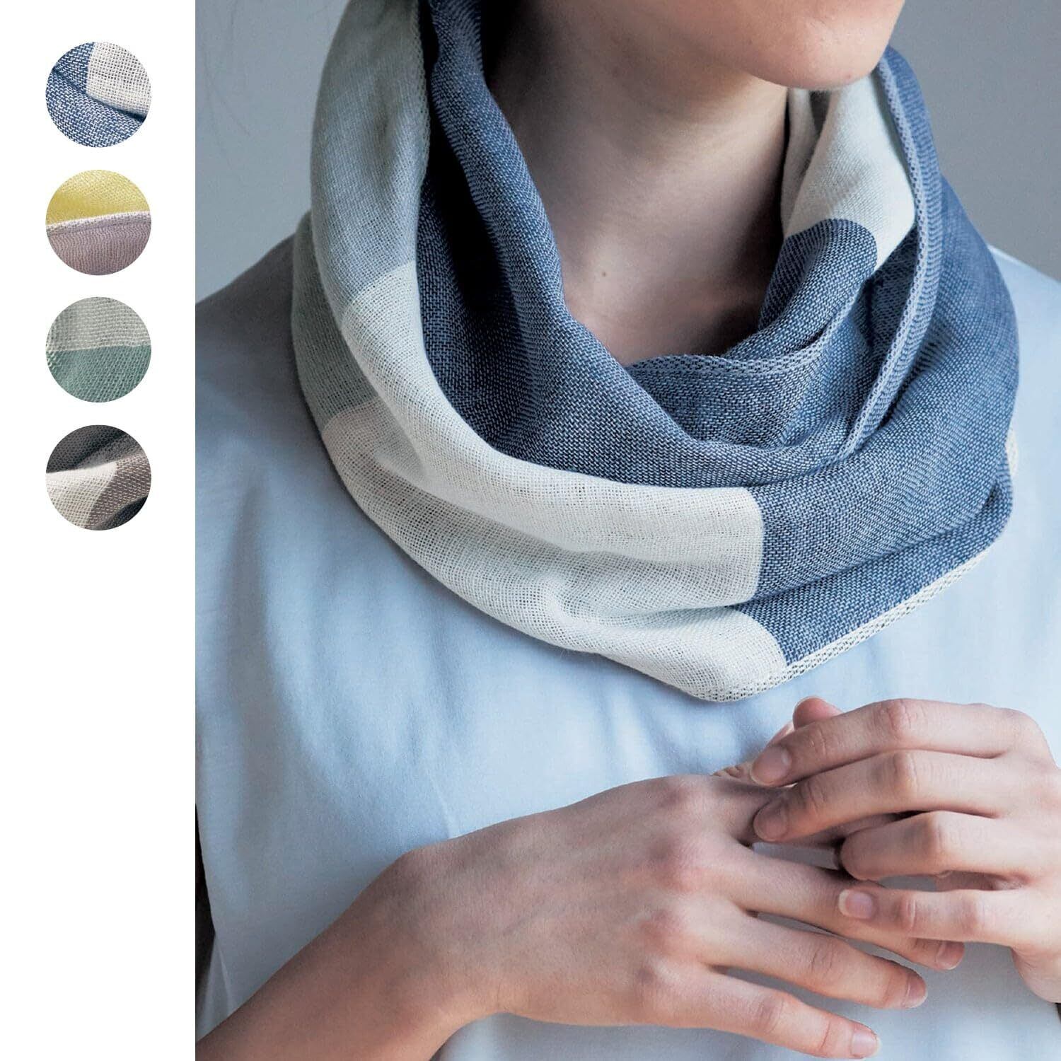 ひと巻きで涼しい人になる ●ふんわりやわらかな今治3重ガーゼ●シャリッと心地いい麻をブレンドしました●ざっくりとした織りだから肌にベたつきにくい●巻き心地もふわっと軽やかです●薄手なので軽くてかさばりません●くるくるとまるめて持ち歩ける●日差しがきつい時間や、クーラーの風で肌寒く感じた時にサッと使えます【巻き方で違う表情が楽しめる】●表面はツートーン●裏面は無地のリバーシブル【安心の今治産】●厳しい品質基準に合格した安心・安全・混品質な今治産●やわらかさと吸水性は世界でも注目をあつめています