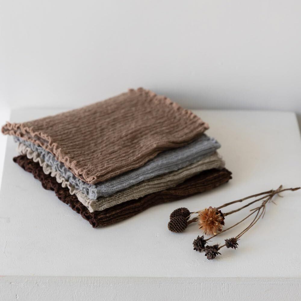 【ふわっと軽く、ずっと暖かい】 昔ながらの編み機でゆっくり編み立てた生地は、空気を含んだような軽さとやわらかさが特長。首元をやさしく包み込み、冷たい冬の風からしっかり守ります。長時間つけても疲れにくい快適な着け心地です。