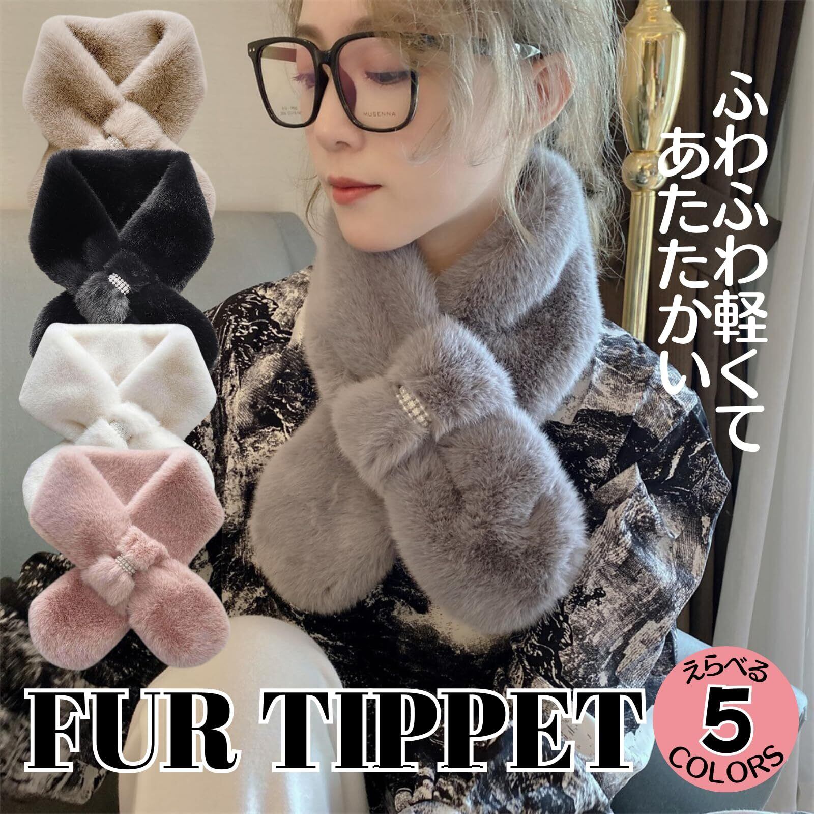 【新春セール】[ソユル] エコ フェイク ファー ビジュー付き ティペット マフラー 襟巻 レディース