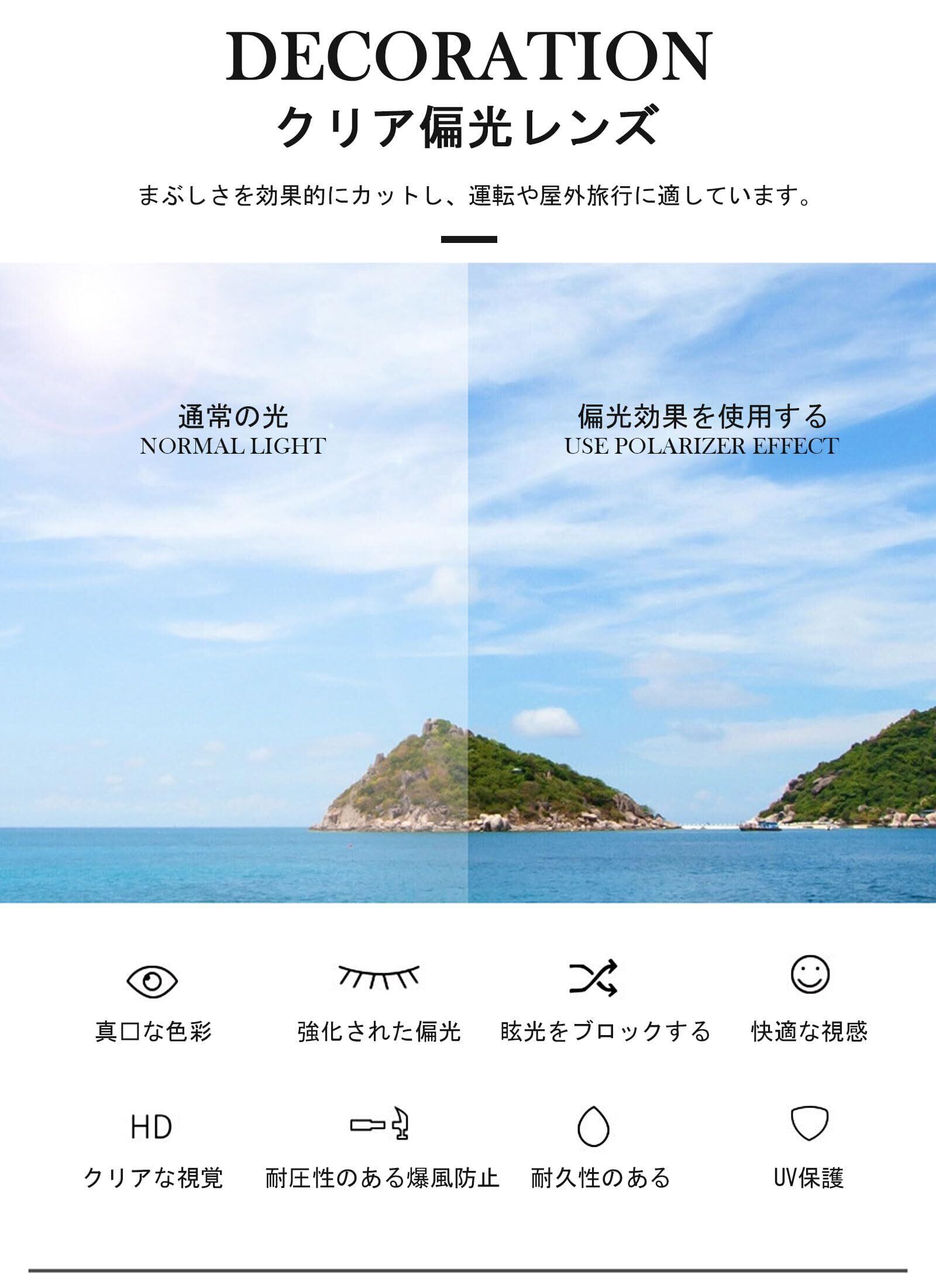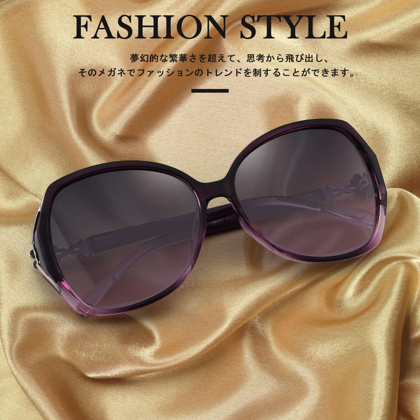 【スタイリッシュ】フレーム部分には、ラインストーンが埋め込まれており、角度によって異なる光を反射でき、掛けるだけでいつ物コーディネートをより華やかにしてくれます。日本人の顔立ちと相性良い楕円形の設計と太めのテンプルの組合で、顔の輪郭を美しく飾り付け、小顔効果も期待できるおしゃれなサングラスです。