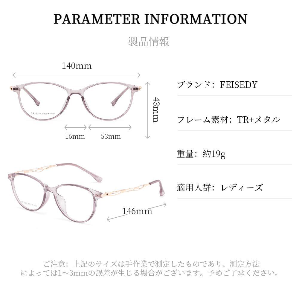 [FEISEDY] 伊達メガネ おしゃれ レディーズ フレームのみ レンズなし ファッション TR素材 超軽量 バタフライ型 初期レンズ付き レンズ取り外し可能 B1521